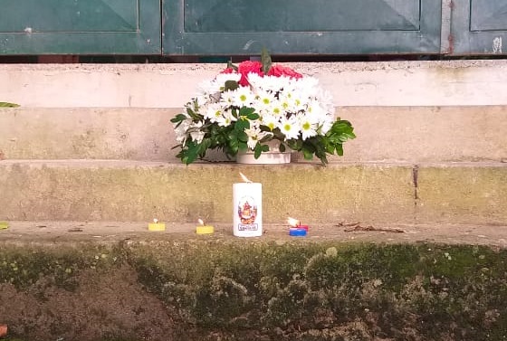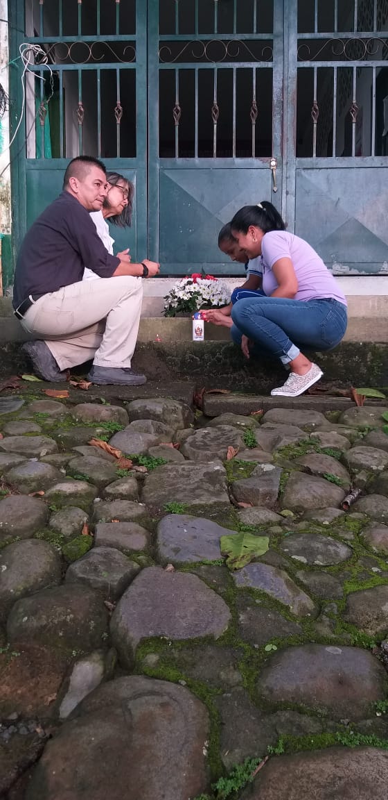 Juan Carlos, Claudina, Berenice y María José el 1 de abril de 2019. Encendieron velas en el sitio exacto donde fue asesinada Octavia Ramírez. (Foto: Jairo Andrés Vargas)