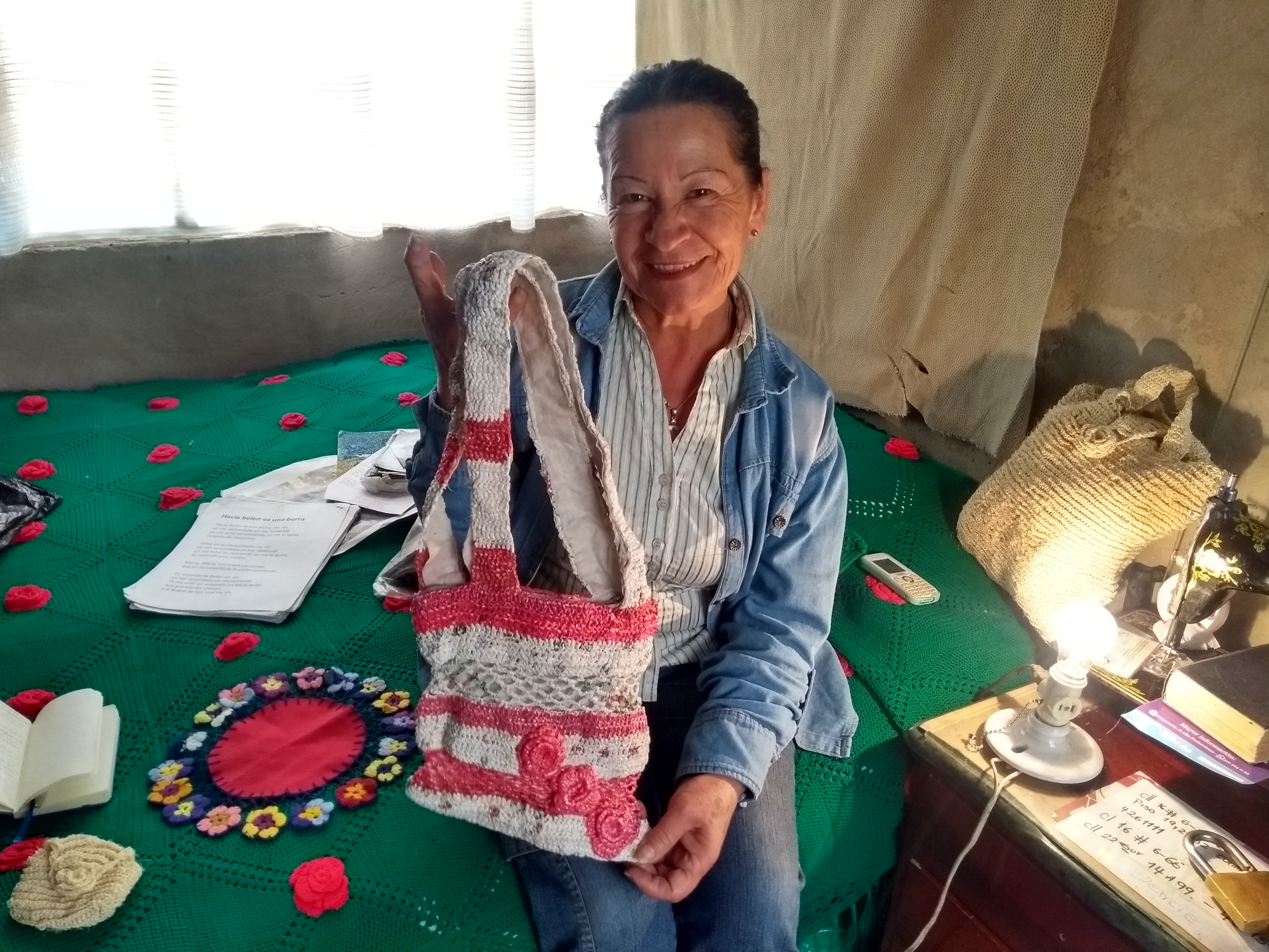 El tiempo, el amor, el emprendimiento, la decisión de querer ser mejor y sanarse a sí misma, son los factores que le han ayudado para ser lo que es hoy en día. Una mujer artesana, consciente de que su creatividad y talento pueden ayudar al medio ambiente, pues además de trabajar con telas, también labora con el plástico, con las tapas de los envases y con los anillos de las latas de cerveza.
