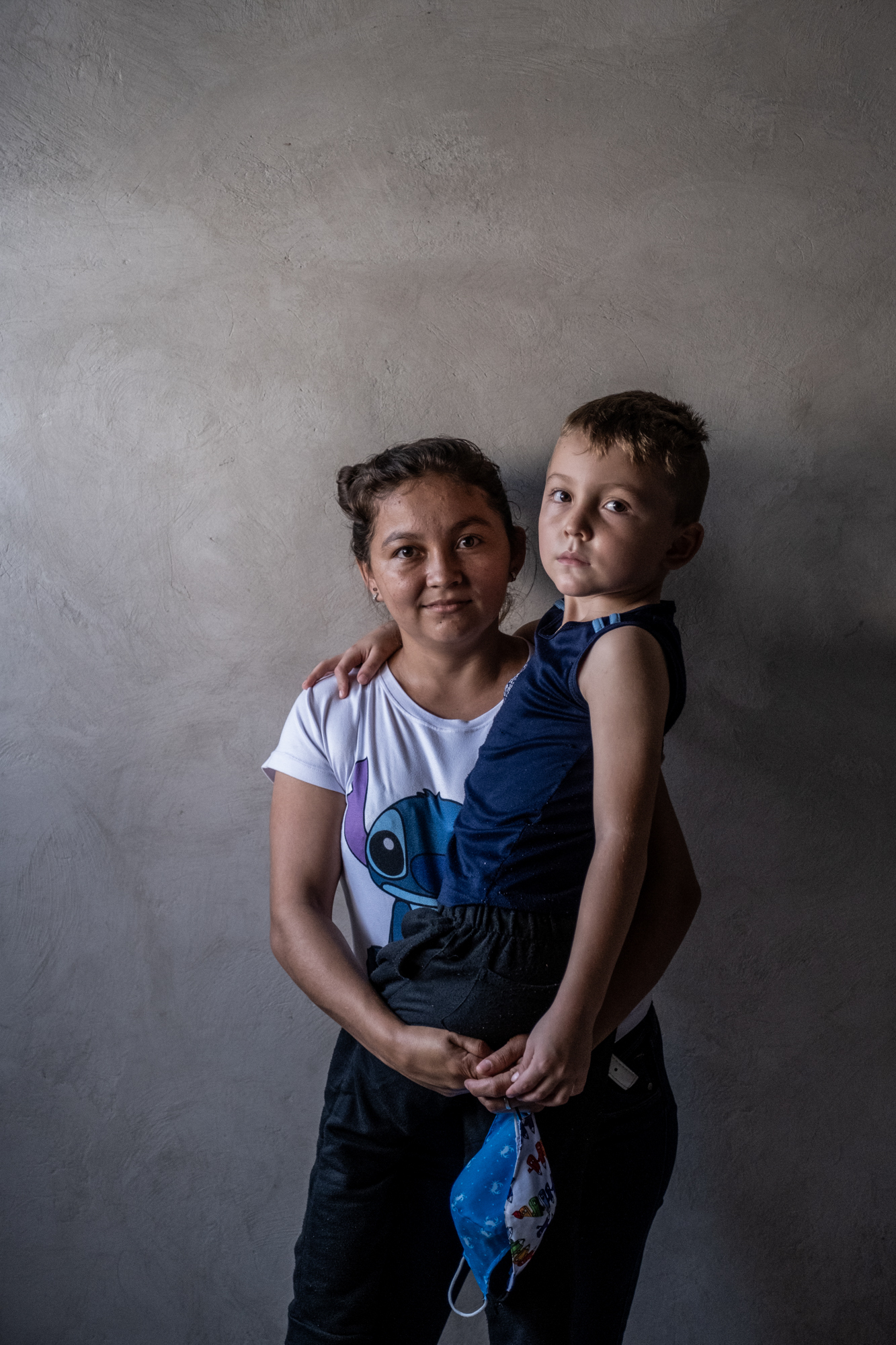 María Alejandrina Uriba y Jesús David Carvajal, esposa e hijo de Alejandro Carvajal. Catatumbo. Febrero 2021. Crédito: Víctor Galeano, Baudó AP.