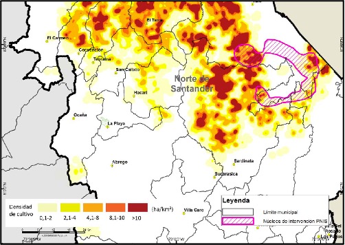 Área de intervención del PNIS en Sardinata. Cortesía de Fundación Ideas para la Paz.