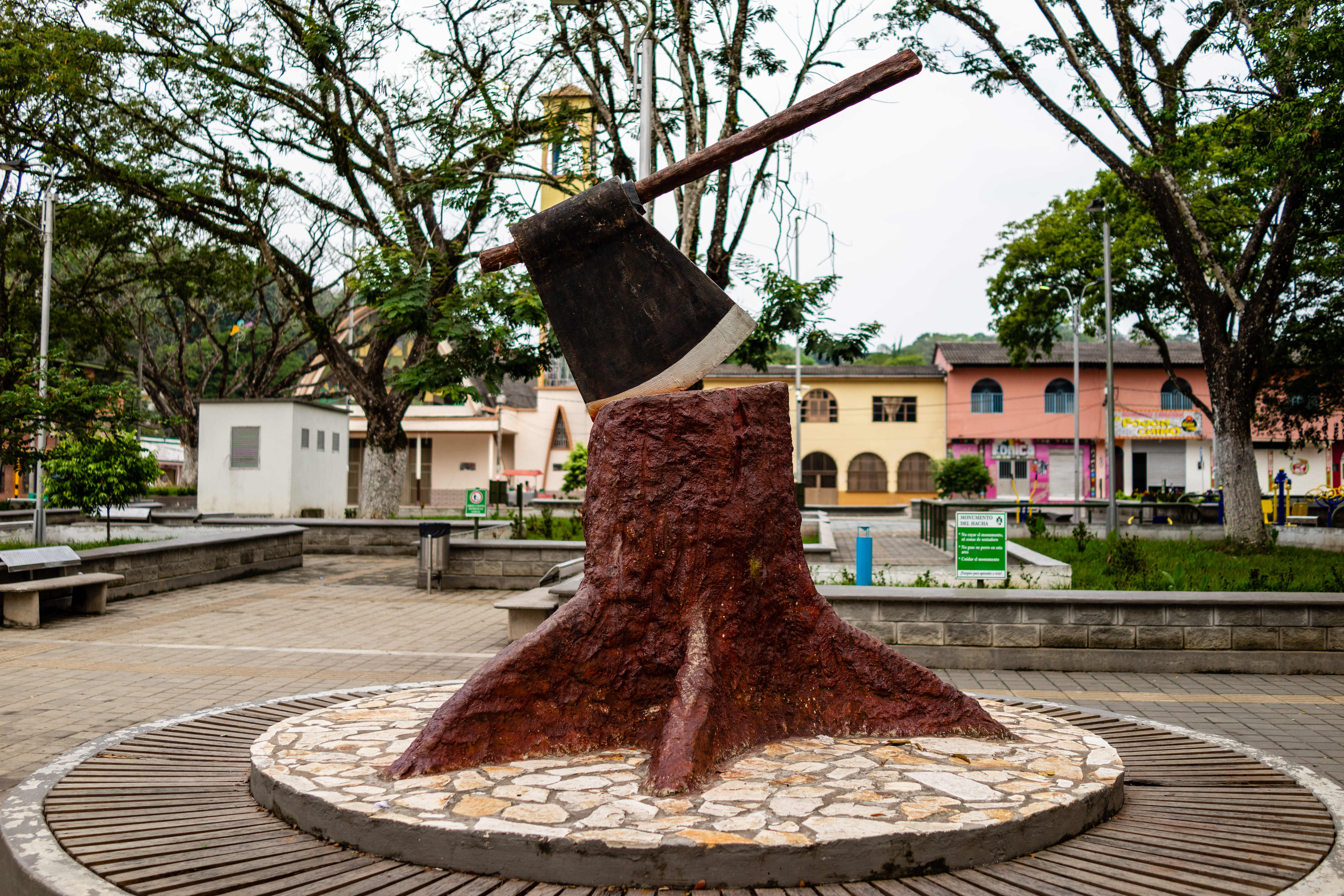 En el centro del parque de San Vicente del Caguán (Caquetá) se encuentra el Monumento al Hacha, un homenaje a los colonos que, empujados por la pobreza y la falta de empleo en muchas zonas del campo, siguen abriendo la selva y tumbando el monte, expandiendo la frontera agrícola para pasturas de ganadería. Los conflictos con el Estado han sido históricamente moneda corriente. Muchos campesinos se instalaron dentro de áreas protegidas, como los parques nacionales de la región: Chiribiquete, Picachos, Macarena y Tinigua. Cuando el ejército los encuentra, puede expulsarlos, pero sin alternativas viables de sustento, los campesinos no tienen otra salida que seguir en la selva. De acuerdo con reportes como los de Monitoring the Andean Amazon (MAAP), la presión deforestadora más fuerte está justo concentrada en estos parques nacionales y la Reserva Nacional Natural Nukak. El Parque Nacional Natural Tinigua, en el departamento del Meta, sufrió la deforestación de 10.000 hectáreas en 2018, casi 7.000 hectáreas más que el año precedente, de acuerdo al monitoreo del IDEAM. Y el Chiribiquete perdió, según MAAP, 2.200 hectáreas, entre julio de 2018 y mayo de 2019.