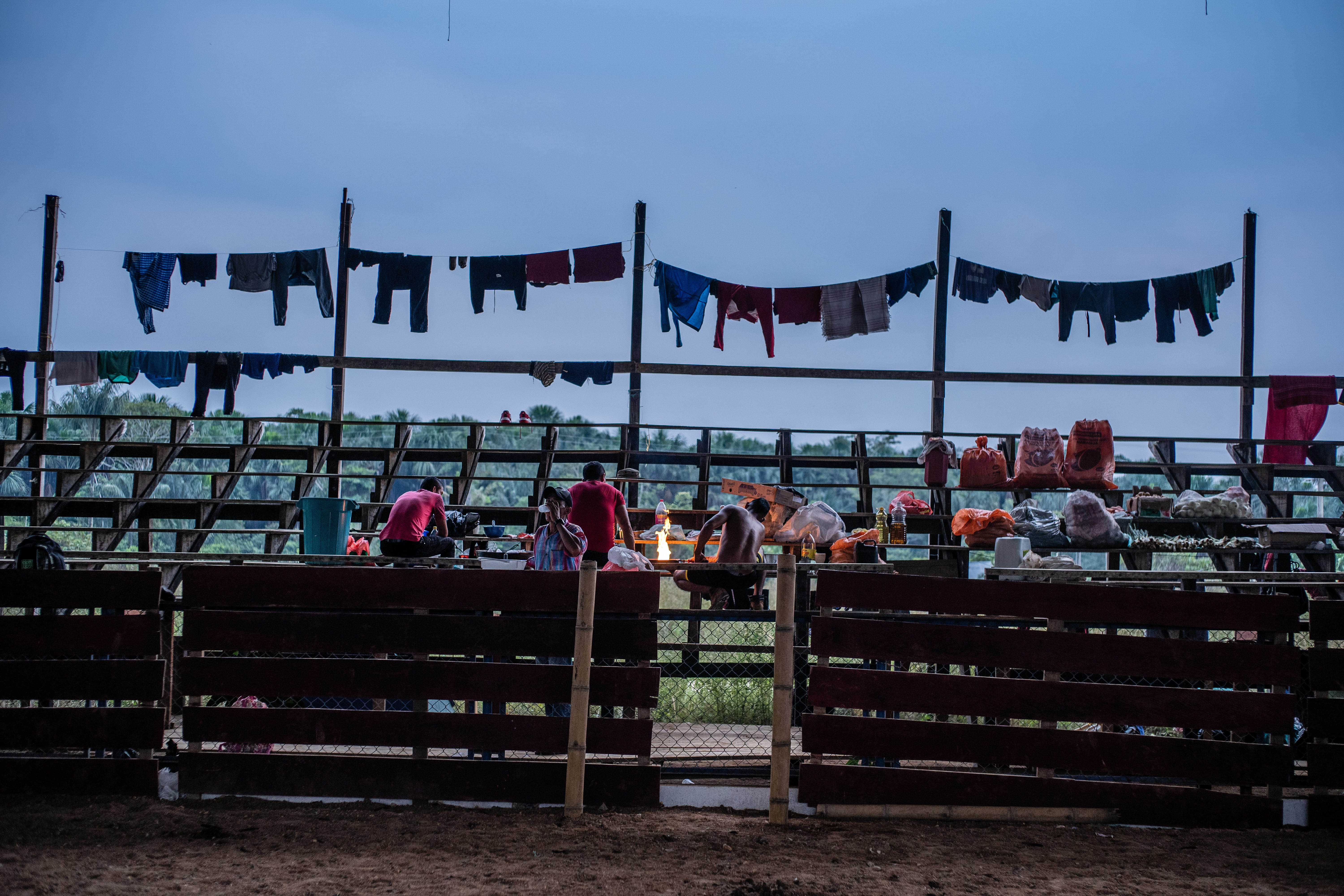 Un grupo de campesinos cocina en un rancho improvisado en el coliseo de San Vicente del Caguán mientras mantiene las protestas en contra de las medidas del gobierno para sacarlos de sus parcelas por estar en zonas de parques naturales.