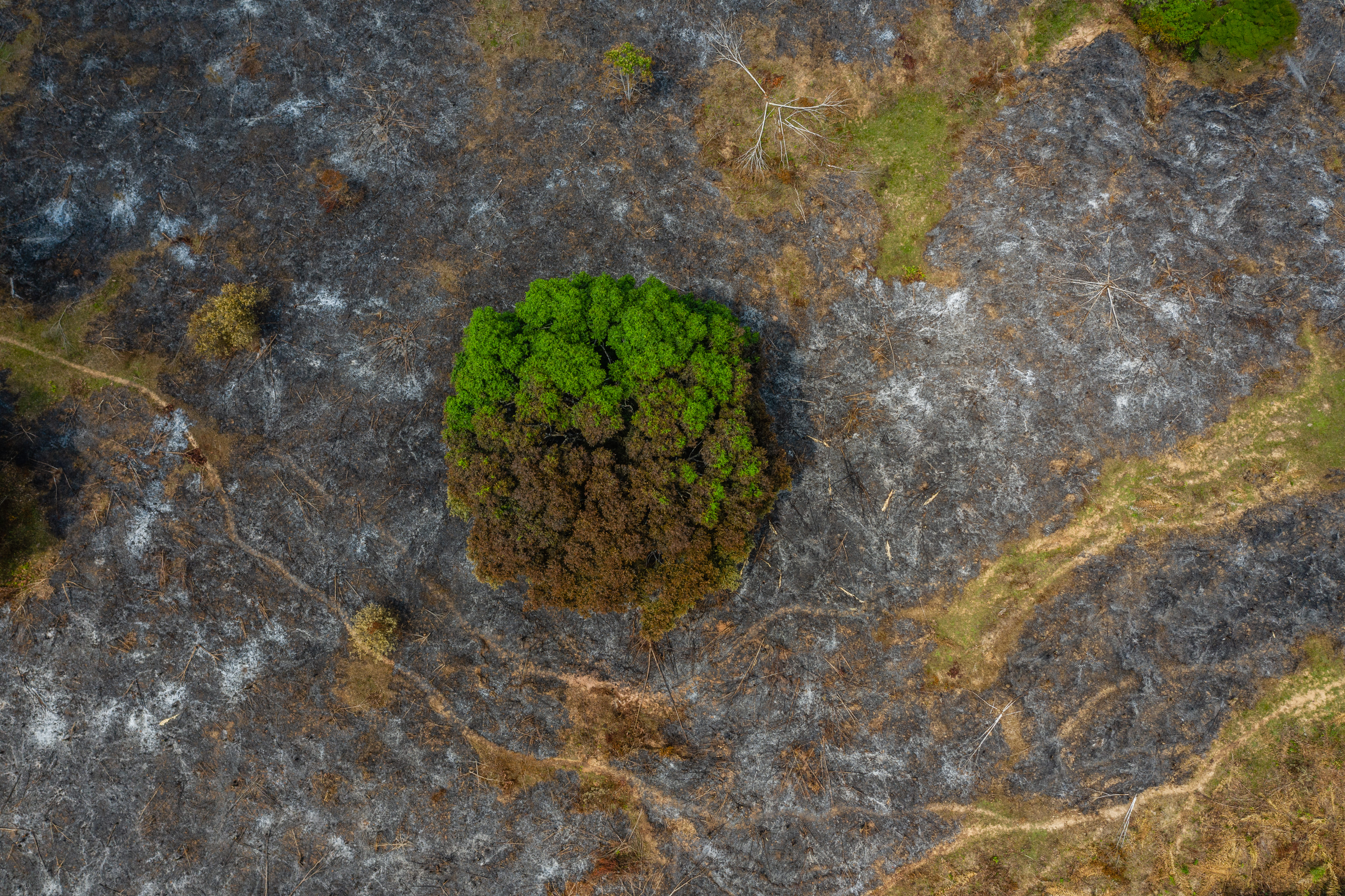 Un árbol quemado hasta la mitad, solitario sobreviviente de una ‘quema’, el incendio que se hace después de talar para dejar el terreno listo para que solo crezca el pasto y lo ocupe el ganado. La imagen fue tomada en una zona ubicada en San Juan de Losada.