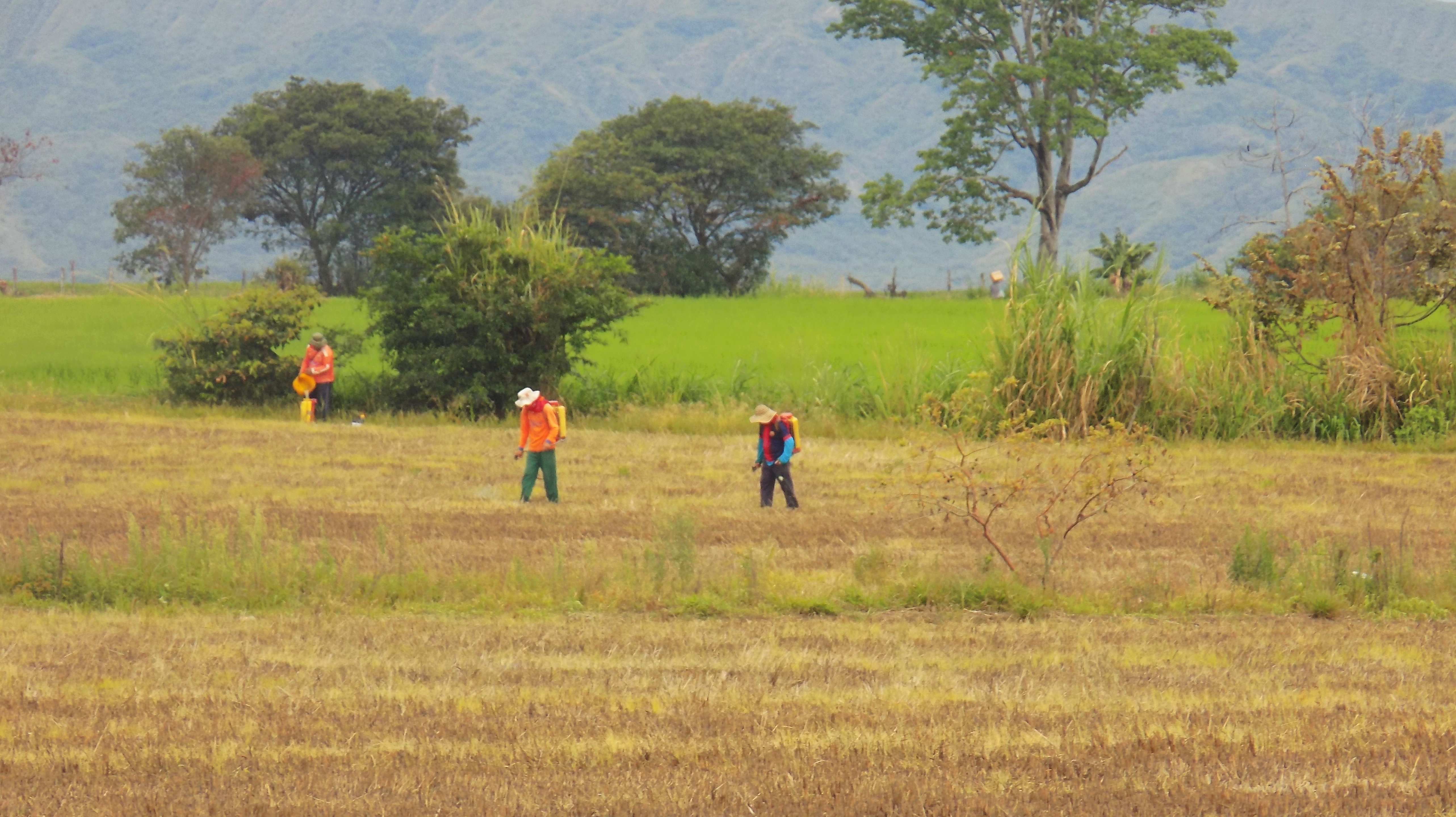 José Gildardo Trujillo se levanta muy temprano, más exactamente a las seis de la mañana, se pone sus pantalones de dril gruesos, sus botas de caucho negras, una camisa de manga larga de algodón, blanca y gruesa para evitar los rayos del Sol y seguramente a los zancudos. Al final se amarra una pañoleta al cuello. Saca de su closet un sombrero grande triangular de guadua con una pequeña manta que cuelga en la parte de atrás, de esos que usan los campesinos en Asia, al otro lado del mundo, específicamente en Vietnam, de esos mismos que se ve en la icónica película dirigida por Oliver Stone y protagonizada por Tommy Lee, “Del Cielo a la Tierra” de 1993. Le da un beso en la frente a su hijo mayor Jerónimo de 17 años y termina de tomarse un caldo de costilla. Saca su camioneta Nissan Navara con platón y sale en camino a los arrozales de Llano Grande, a 5 kilómetros del municipio de Campoalegre, en el departamento del Huila, al sur del país. Tierras de grandes arrozales que han guardado historia de su población por más de dos siglos.