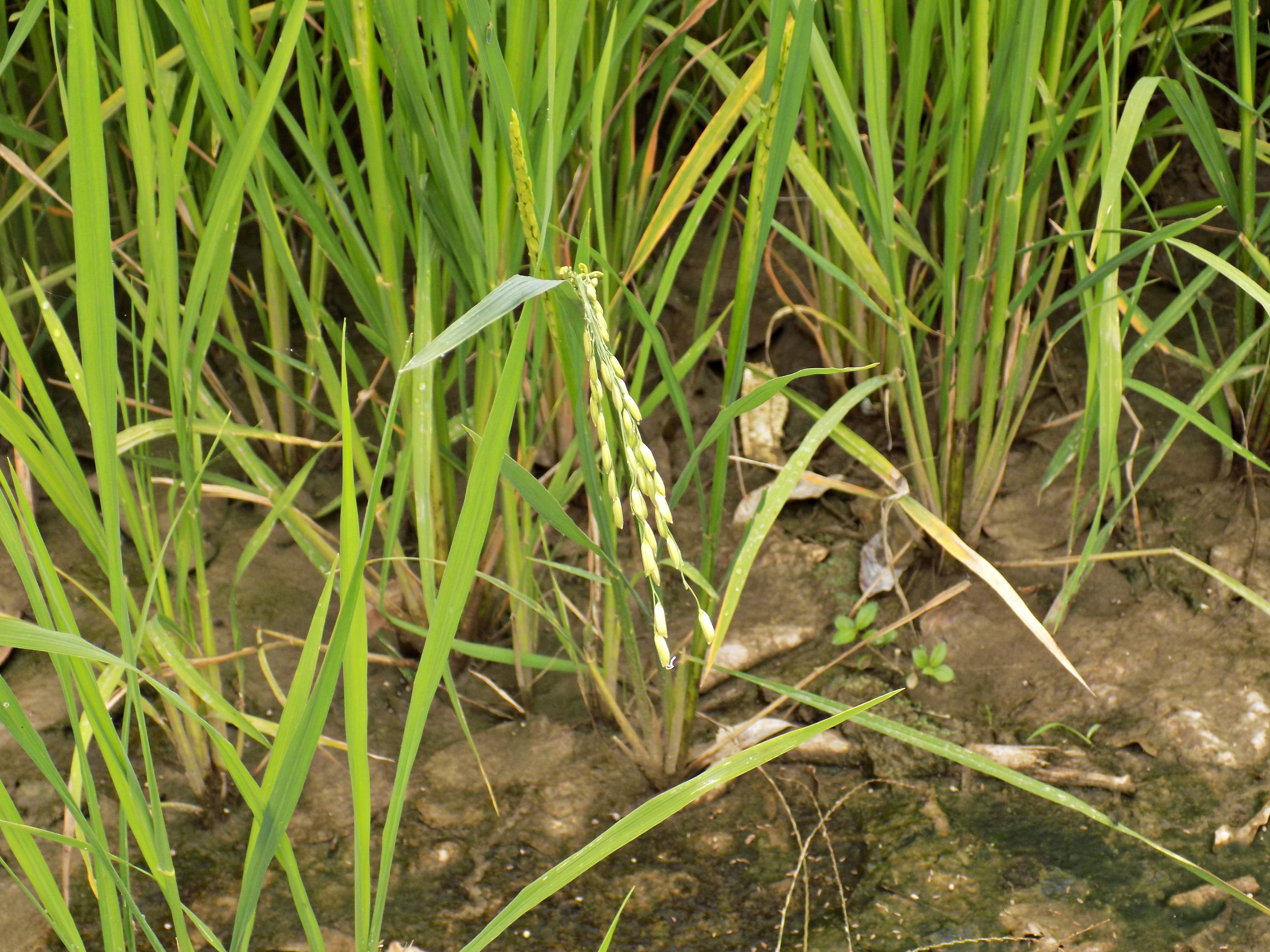 Planta de Arroz donde se aprecia la rama con las semillas a punto de recoger. Fotografía de Paula González.