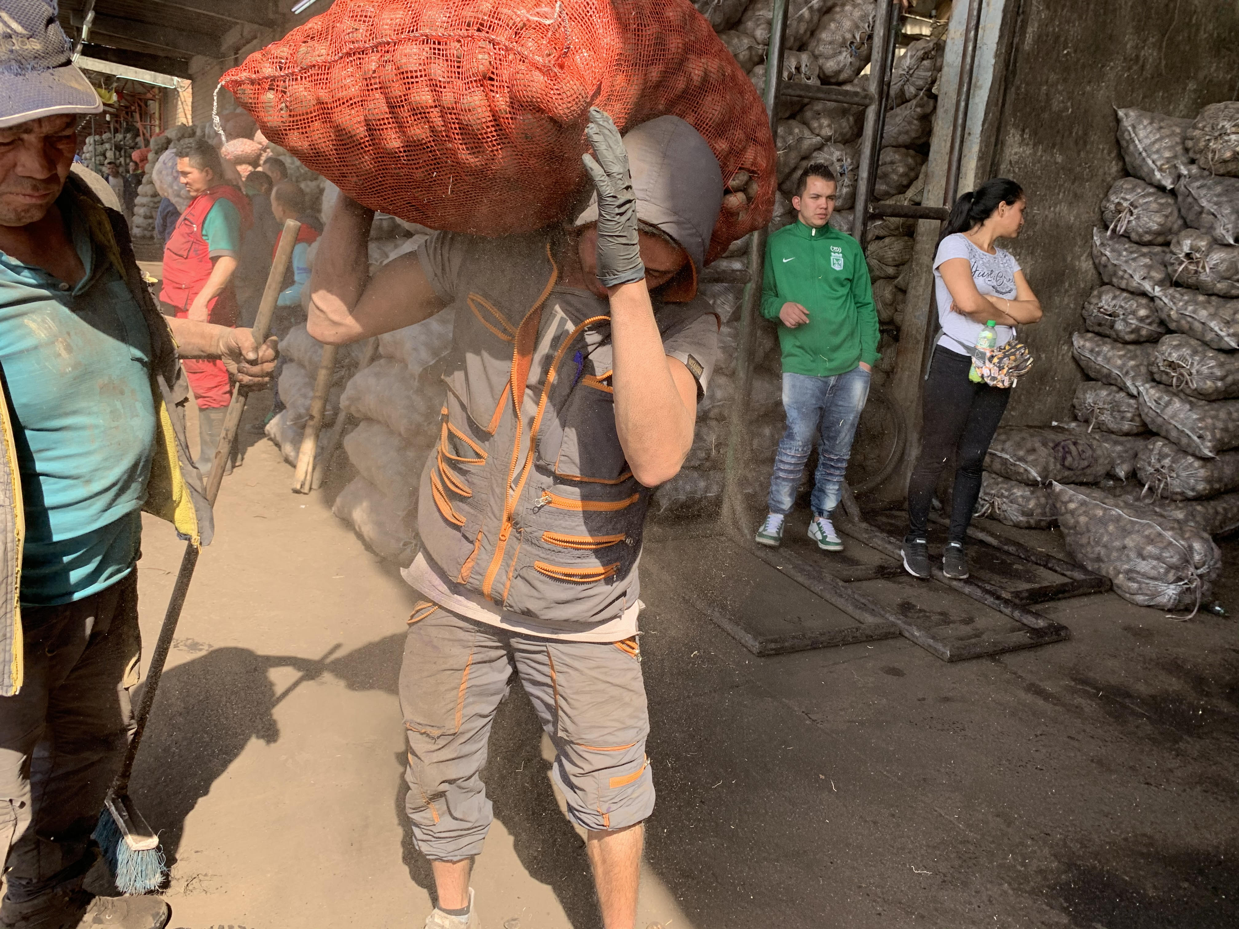Jéfferson Montoya y Alberto, su padre, llegan a la central mayorista de mercado Corabastos a media noche. Van a trabajar en la bodega asignada para la papa: la número 13. A los 16 años, Jefferson comenzó a trabajar en las plazas de mercado una vez se graduó del colegio para ayudar económicamente a sus padres. Había ganado media beca para estudiar Ingeniería Civil, pero la oportunidad se esfumó.