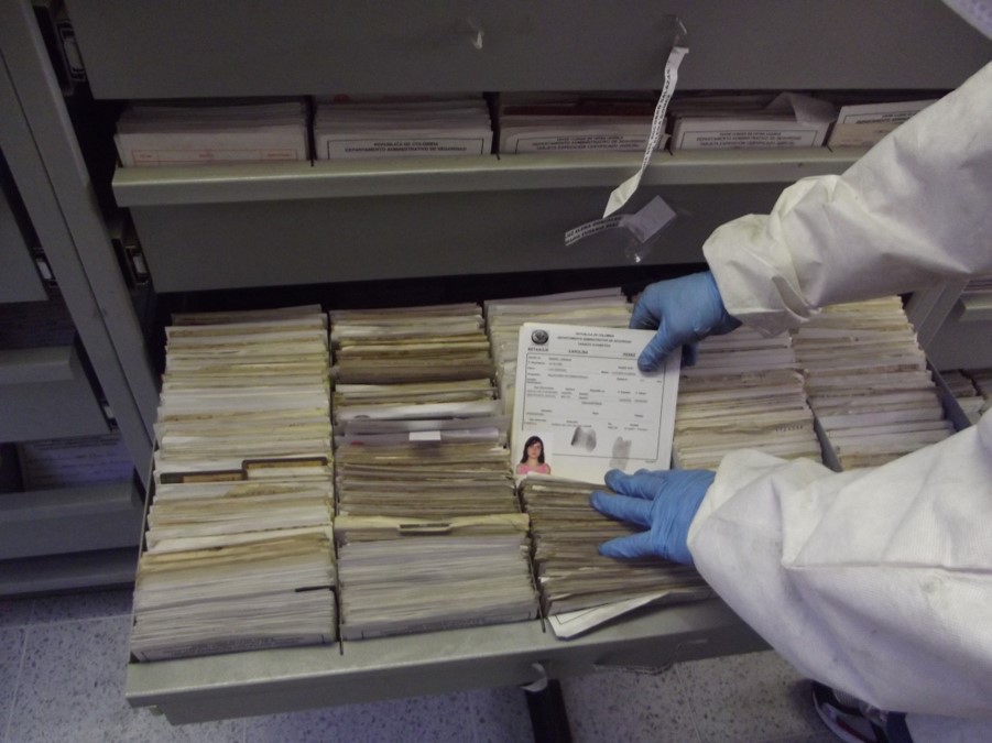 En 2011 Cuadros lideró una iniciativa para salvaguardar archivos del extinto DAS que sirven para la identificación de personas desaparecidas. Foto: Cortesía de la Colección Fotográfica de la Curaduría del Museo Histórico del DAS.