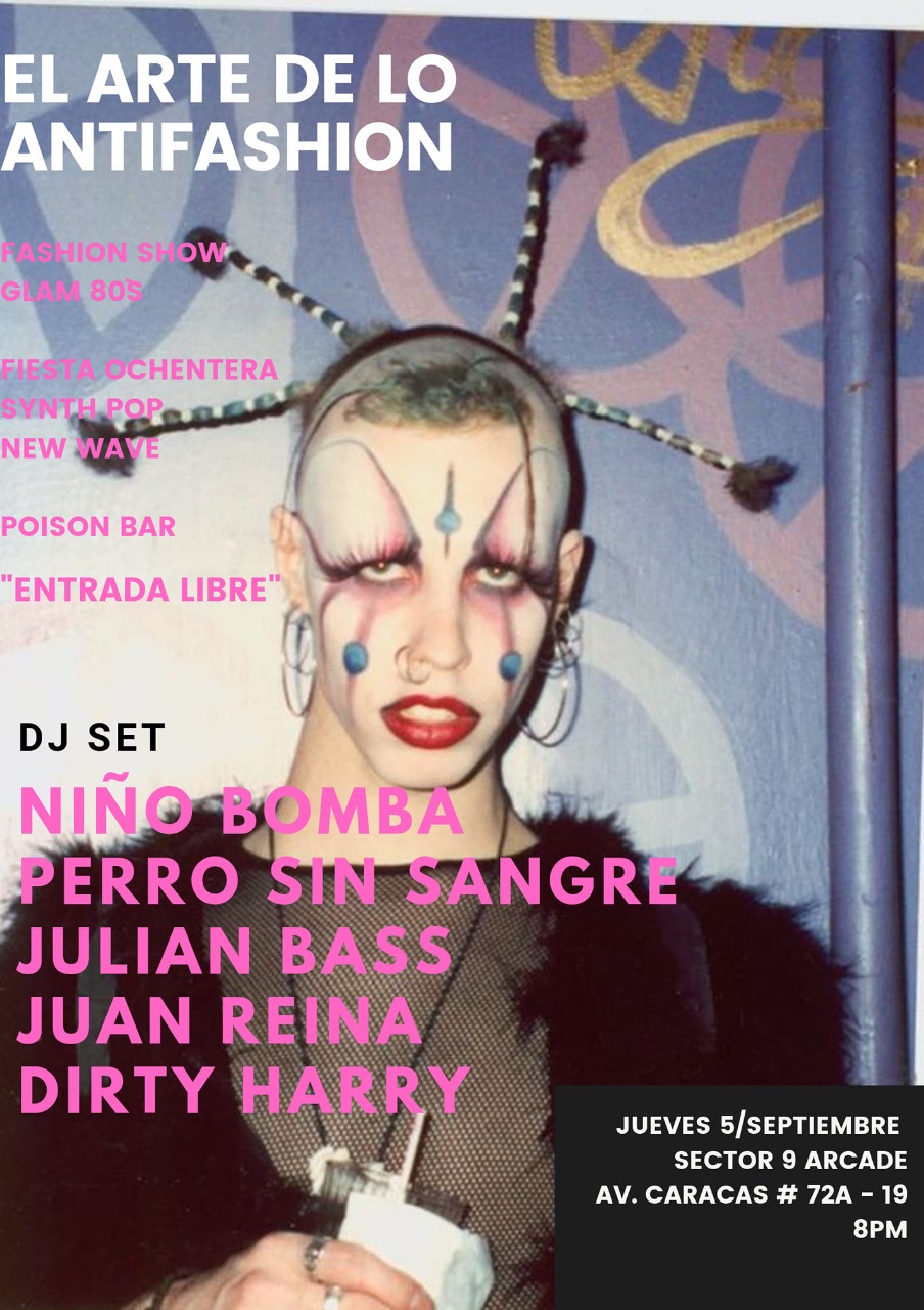 El antifashion más reciente se celebró el pasado 5 de septiembre. Giró alrededor de una temática que evoca todo el glam de los excéntricos años 80: una noche llena de conceptos bizarros, color y propuestas de vestuario que están fuera de lo común. La fiesta, que tuvo lugar en la fría e irreverente Bogotá, estuvo ambientada con sonidos ochenteros: New Wave, Synth, Pop, Disco y Post Punk.