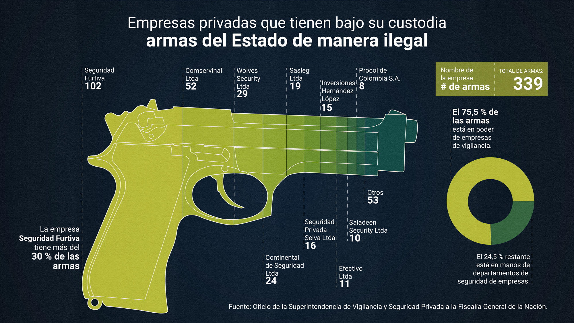 El caso de las 23 empresas no es el único. Voceros de la Superintendencia de Vigilancia le dijeron a la revista RAYA que la entidad se apresta a cancelar más licencias de empresas que no cumplen con los requisitos para tener departamentos de seguridad, o empresas de vigilancia privada. Sin embargo, el papel que están cumpliendo cientos de armas ilícitas en manos de civiles hoy en Colombia es incierto. Incluso, el director del Departamento de Control y Comercio de Armas, coronel Miguel Ángel Gracia, reconoció que esa entidad no tiene una forma de lograr que las empresas hoy sin licencia retornen las armas al Estado. "Que yo tenga un medio coercitivo para poderle decir a una empresa que no le dieron su licencia que me devuelva las armas, no lo tengo", dijo.