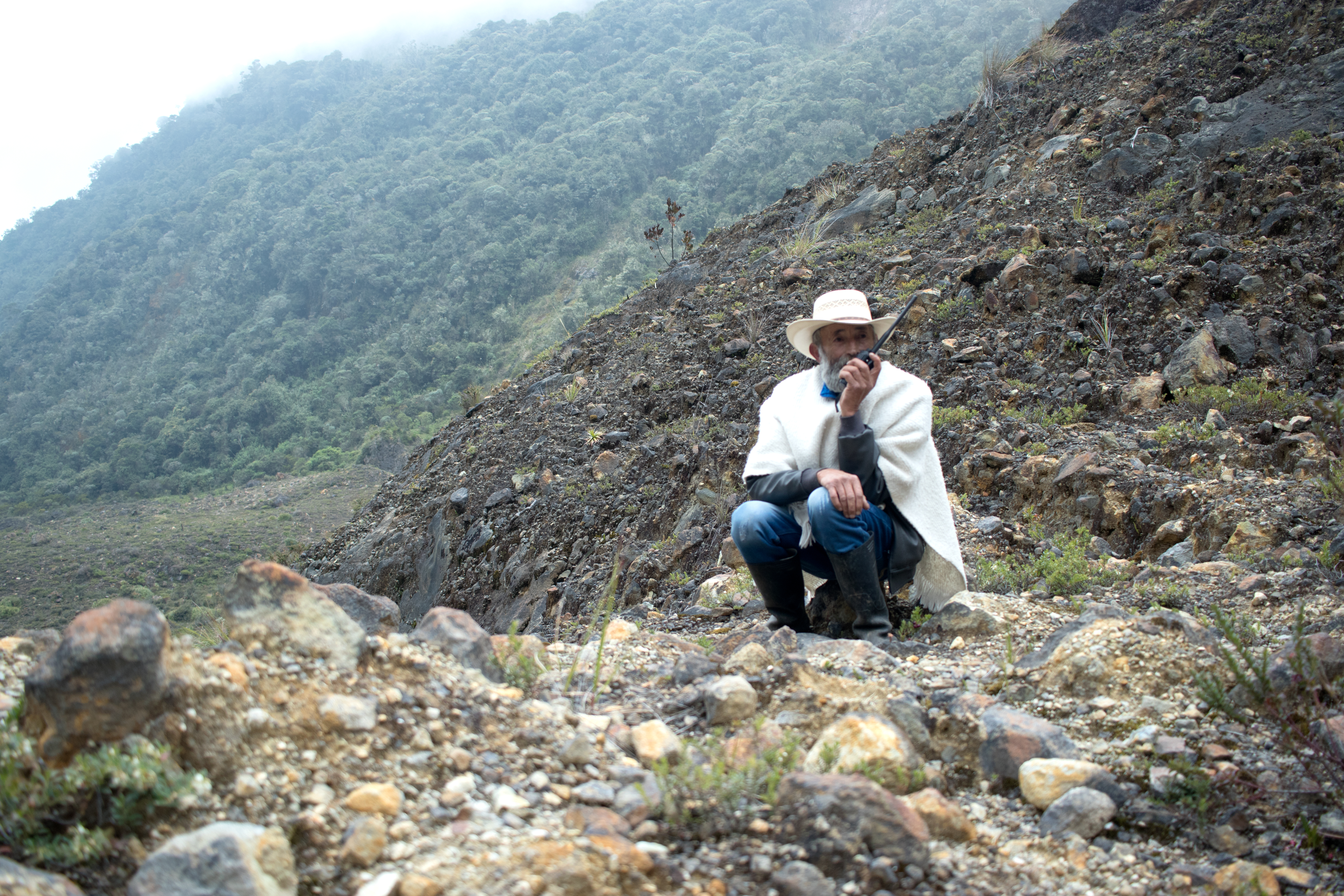 En plena actividad: Serafín a donde sea que vaya lleva consigo un radio, con el que se comunica con el Servicio Geológico, ubicado en Manizales. (Foto: Andrés David León)