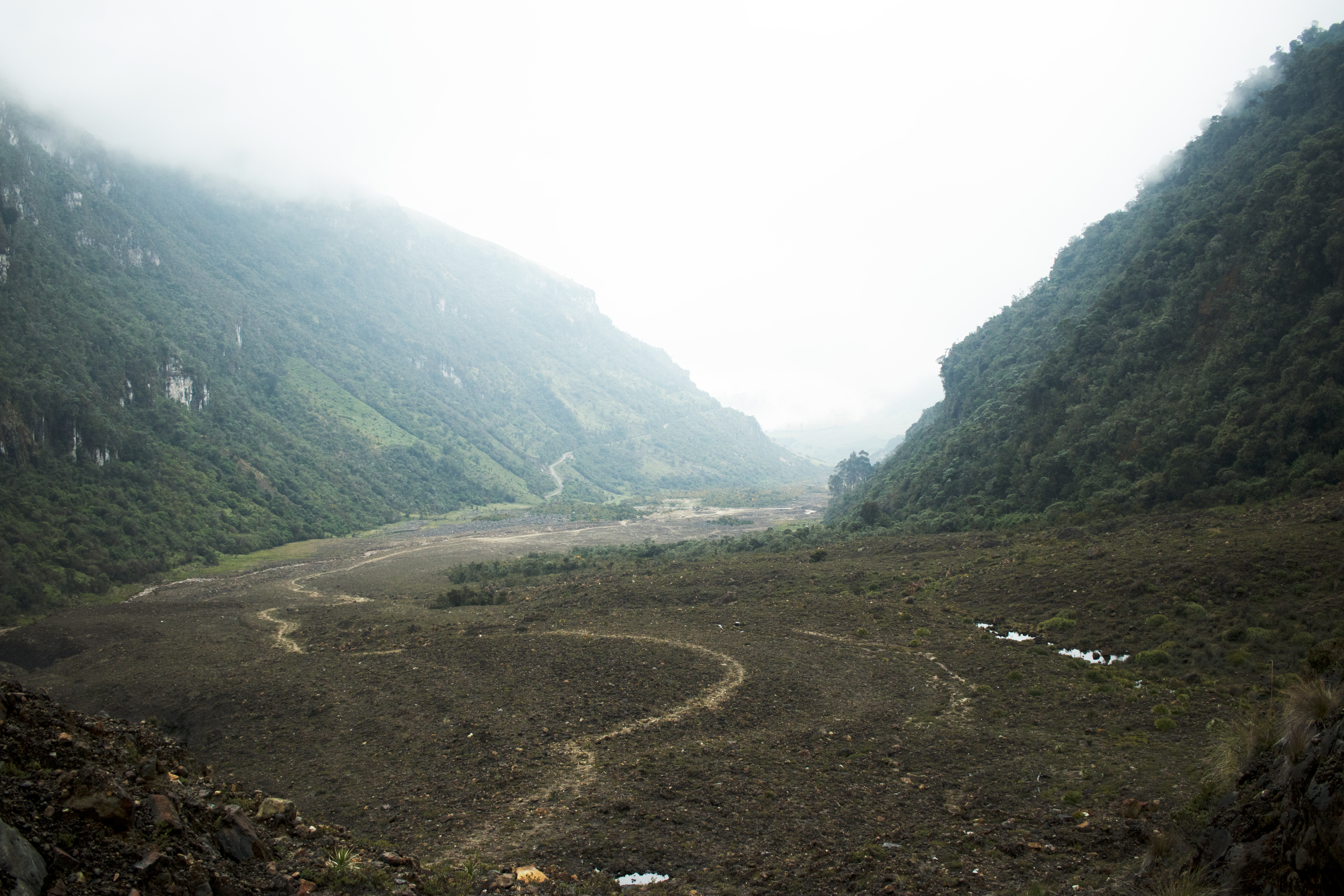 Valle de Lagunilla: Vista del valle por donde inició la avalancha que destruyó Armero. Al borde de la carretera se puede apreciar la casa de Serafín, la única de la zona. (Foto: Andrés David León)