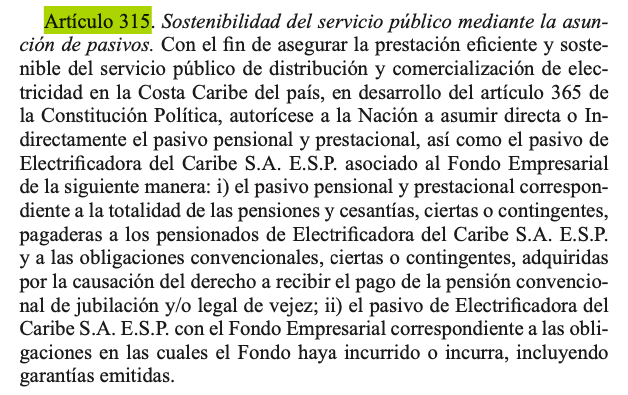 El 2 de abril de 2019 se lanzó oficialmente el nuevo proceso. Paralelamente se tramitaba en el Congreso el Plan Nacional de Desarrollo. Fue allí donde se le puso el moño al regalo con una sobretasa de 4 pesos por kilovatio para los estratos 4, 5 y 6 en todo el país, que hoy no está vigente. Además los siete departamentos quedaron divididos en un segmento: Bolívar, Cesar, Sucre y Córdoba, y en el otro segmento Atlántico, Guajira y Magdalena. Todo formalizado en los artículos 315, 316, 317 y 318 del Plan Nacional de Desarrollo 2018-2022 (Ley 1955 de 2019), tramitado a través del Congreso, con el apoyo de la bancada de la Costa Caribe.