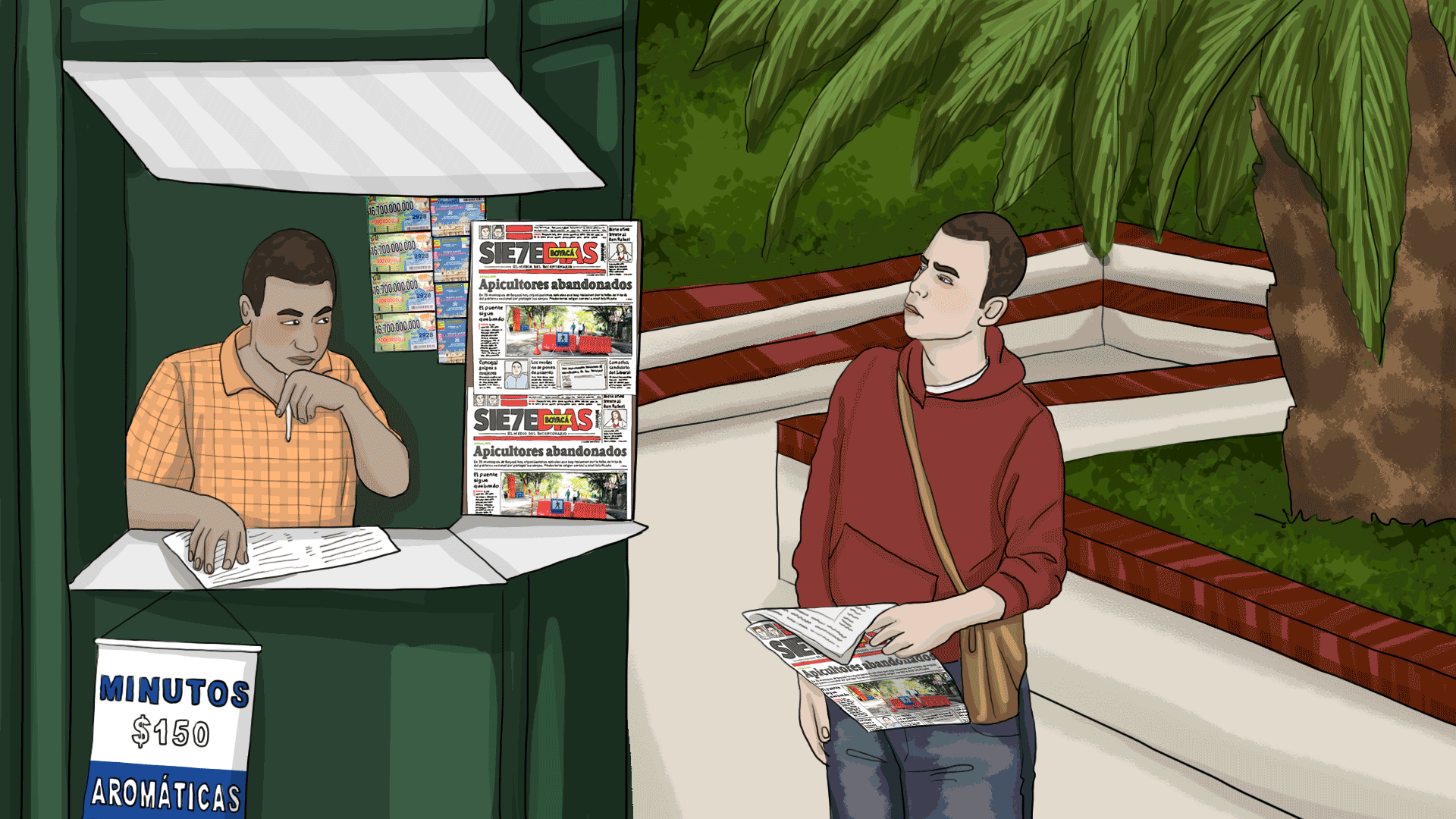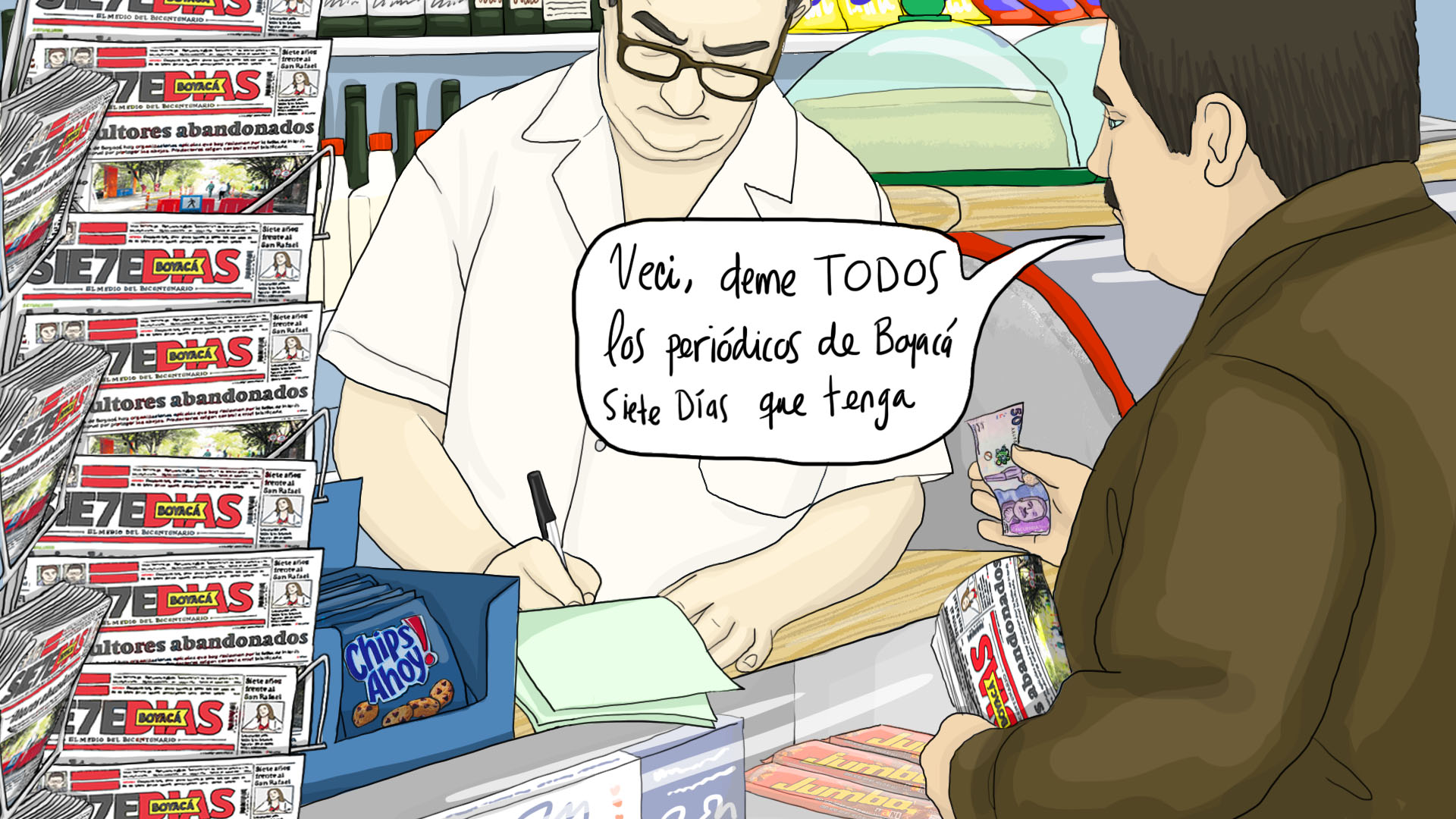 “Me preguntaron cuántos periódicos tiene. Tantos. ‘Deme todos’. Yo los vendo porque ese es mi trabajo”, explica uno de los dependientes. Cada periódico cuesta mil pesos. El vendedor tenía diez ejemplares, entre Boyacá Siete Días y Extra.