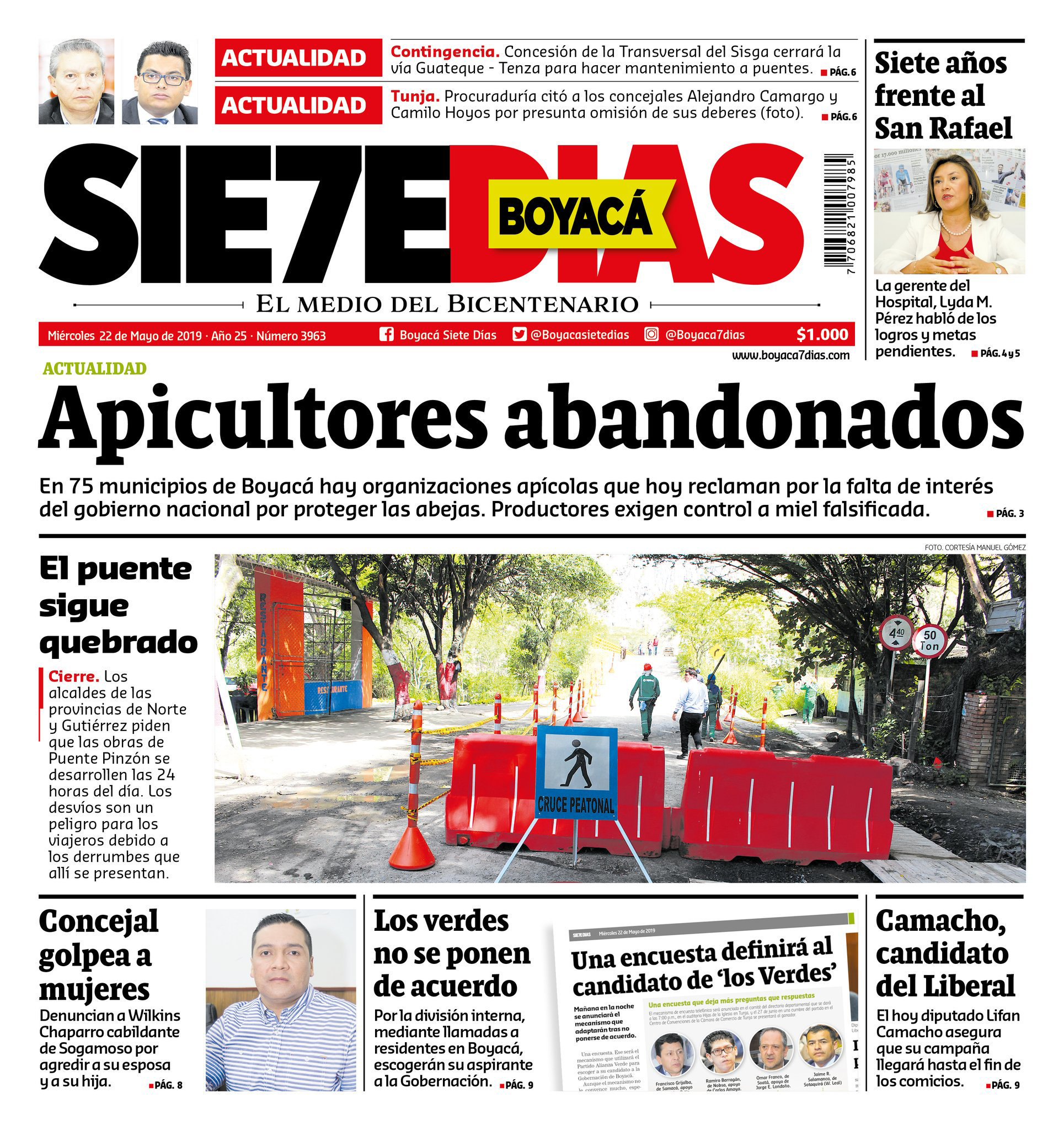“Concejal golpea a mujeres”. Ese fue uno de los ocho titulares de la portada del pasado miércoles 22 de mayo en el diario Boyacá Siete Días. La historia se refería a Wilkins Chaparro, del partido Opción Ciudadana, quien aparece junto a la noticia.