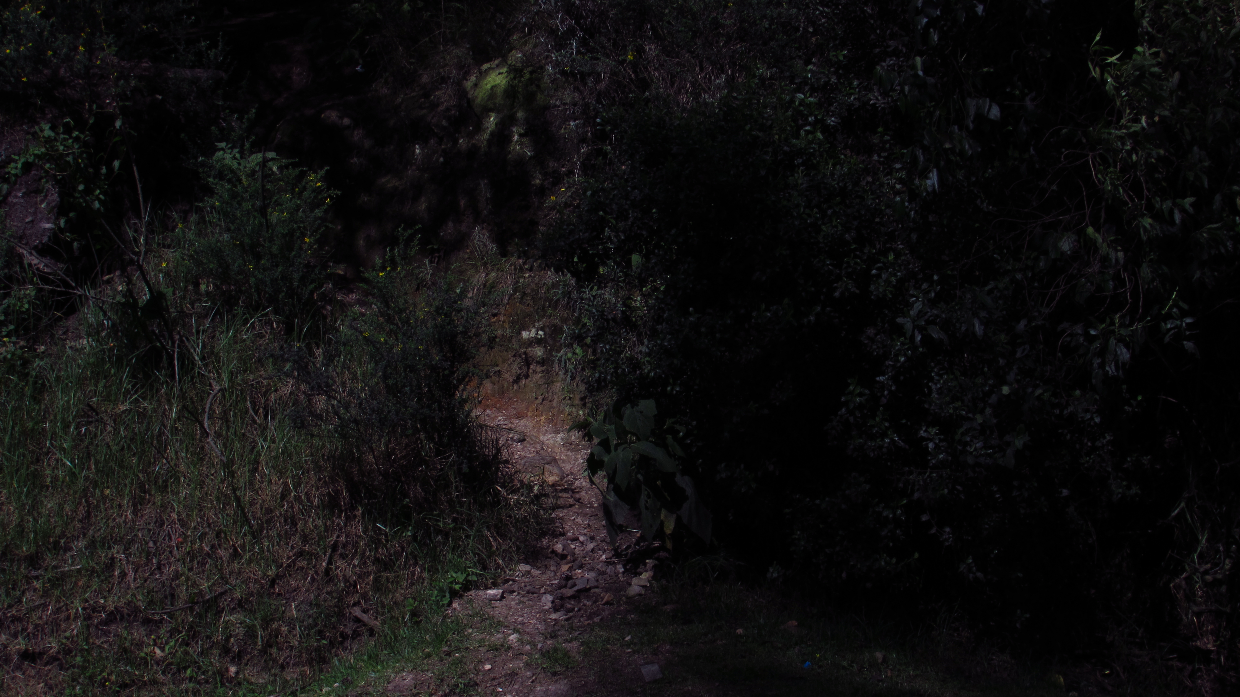 Uno de nosotros caminó por el sendero para observar el terreno, mientras dos de nosotros permanecimos esperando con angustia en caso de que algo llegara a ocurrir. Luego de una interminable espera, el joven regresó un poco asustado y tensionado por lo que había visto. Al parecer, el terror que sintió en aquel lugar fue indescriptible, pues al ir caminando se sintió perdido en dicho sitio desolado y en un momento empezó a escuchar unos pasos que se sentían con el crujir de las hojas secas y el pasto, su corazón empezó a latir desaforado, y a pesar de que miraba hacia todos los lugares, jamás pudo observar la fuente de dicho sonido. Cuando quiso regresar, había olvidado el camino de vuelta, puesto que el sendero se dividía en cuatro y todos parecían ser el mismo, el joven se sentía invadido por una sensación de peligro. Logró volver al lugar en el que nos encontrábamos gracias a la ubicación que le enviamos por teléfono. En ese momento nos dimos cuenta que ese espacio que tanto buscábamos, tenía que estar cerca, pero quizás nunca lo íbamos a encontrar, a no ser que uno de los miembros del grupo de personas que meditan allí, nos indicará el sector.