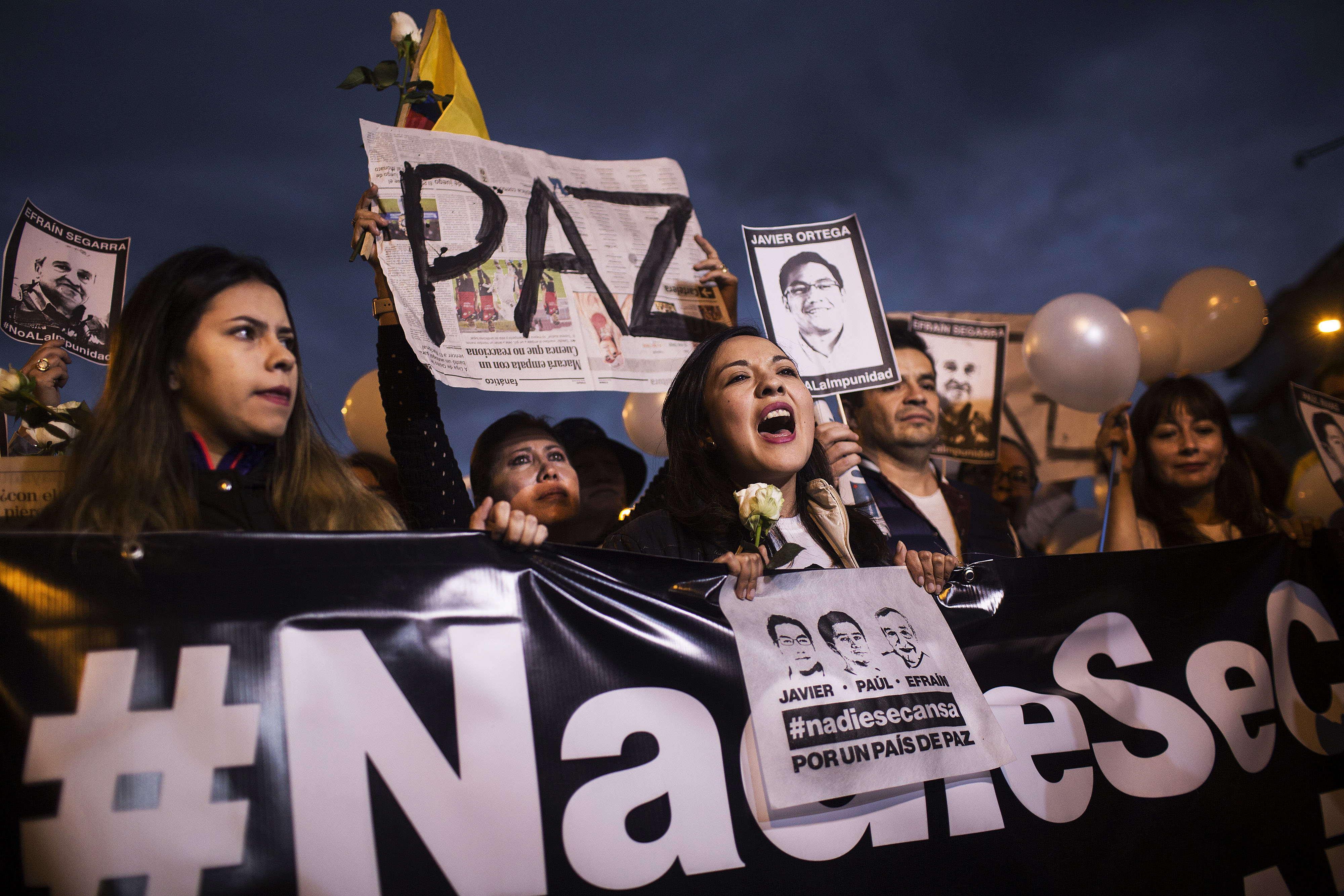 Javier Ortega, Paúl Rivas y Efraín Segarra fueron asesinados con disparos en la nuca, a quemarropa, bajo una noche oscura y lluviosa en medio de la selva colombiana. Ortega, reportero; Rivas, fotógrafo; y Segarra, conductor, trabajadores del diario El Comercio de Ecuador, habían sido secuestrados el 26 de marzo de 2018 por el Frente Oliver Sinisterra, una narco disidencia de las Fuerzas Armadas Revolucionarias de Colombia (FARC) liderada por el excombatiente Walther Patricio Arizala Vernaza, identificado así en Ecuador, y conocido en Colombia como Luis Alfredo Pai Jiménez. En ambos países tiene el mismo alias: Guacho.