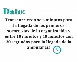 Velásquez afirma que se debe considerar no solamente el tiempo que se tardó la atención. Lo ideal en esos casos, afirma, es usar un desfibrilador para tratar de restituir el ritmo normal de los latidos del corazón del paciente en los primeros tres a cinco minutos. Pasados 10 minutos, la posibilidad de que se recupere el ritmo cardiaco normal se acerca a 0%. Con esa idea coincide Carlos Rojas, médico internista y cardiólogo: “Si se deja pasar el tiempo, hay menos probabilidades de supervivencia porque puede haber muerte cerebral. A nosotros el cerebro nos ayuda sin oxígeno hasta tres minutos”.