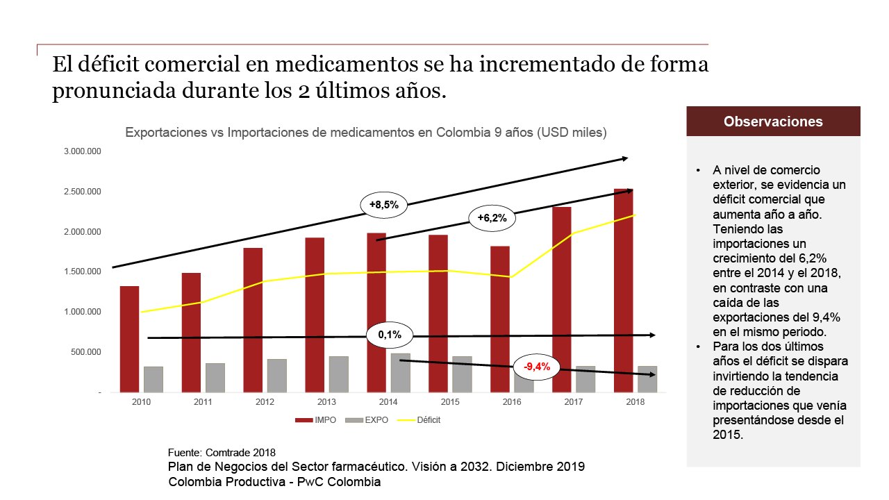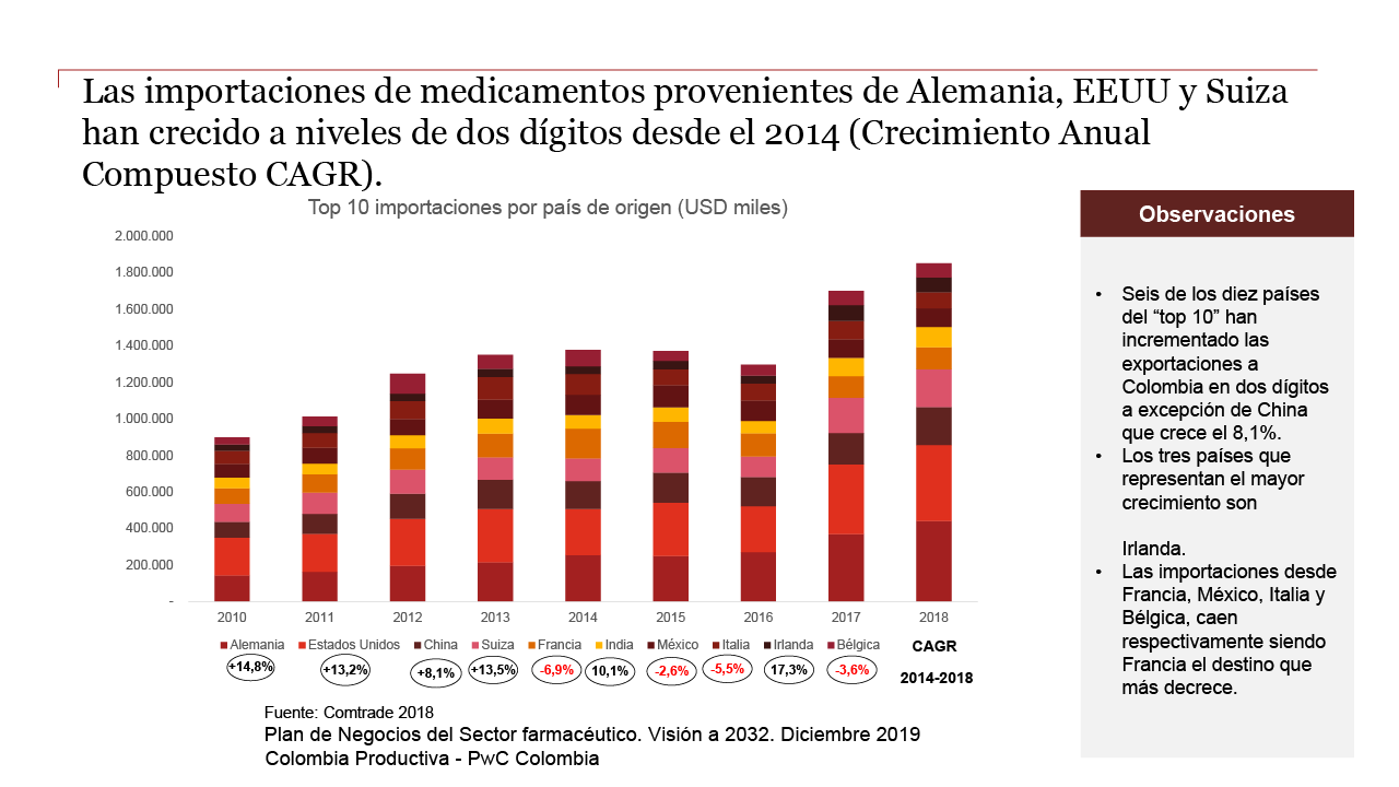 Gráfico tomado del documento ‘Plan de Negocio. Industria farmacéutica 2019-2032’ de PwC y Colombia Productiva.