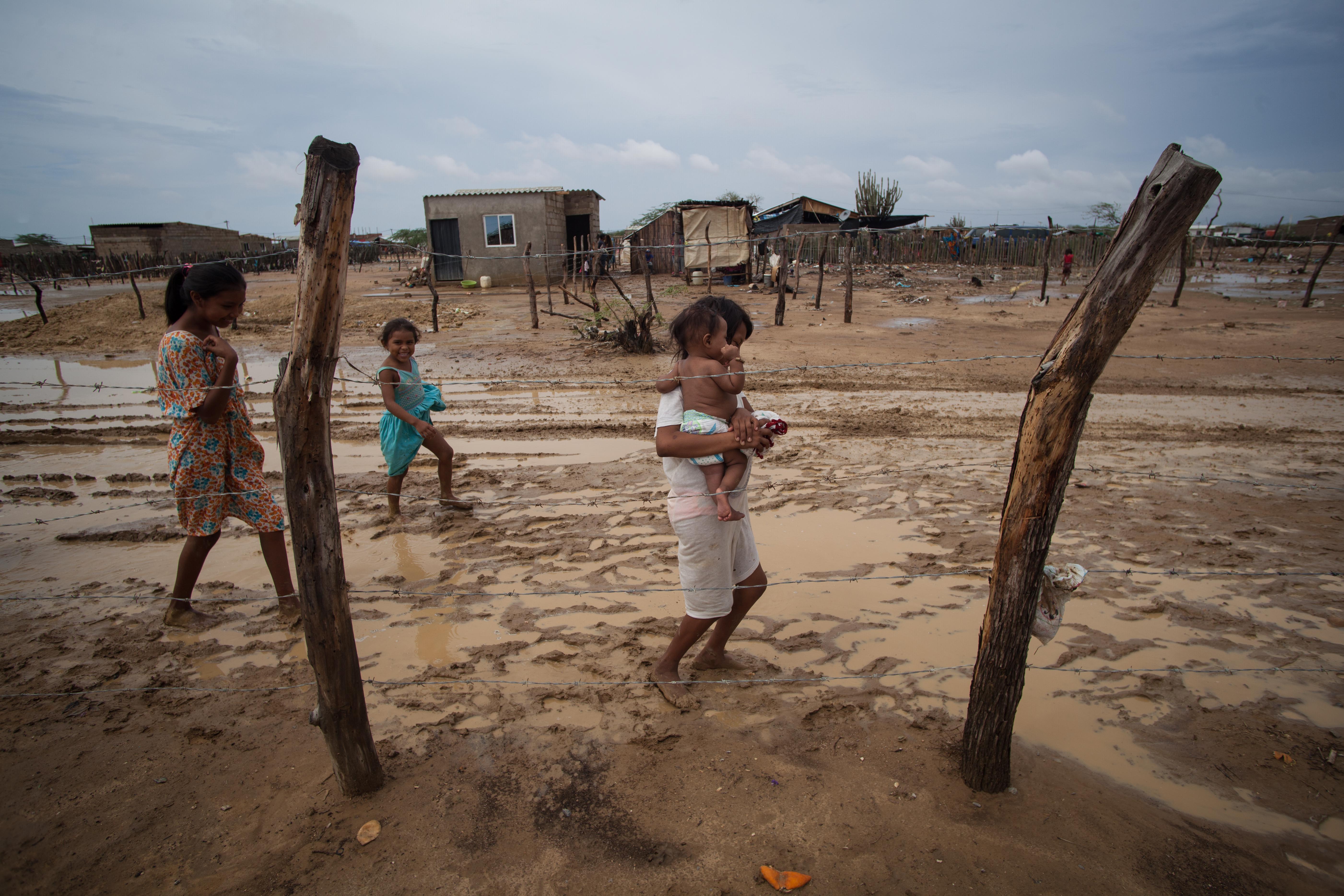 Niños y mujeres wayuu son los que más sufren con el retorno de Venezuela a Colombia. El agua y los alimentos escasean. (Foto: Luis Ángel)