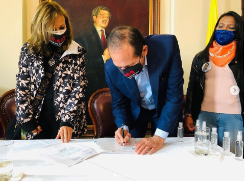 Antonio Sanguino firmando la Ley 6402 de víctimas ante el Congreso de la República. Fotografía de archivo personal.