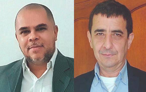Javier Macías y Ferney Arias, periodistas del medio de comunicación “El colombiano”, ganadores del premio Simón Bolívar de periodismo. Fotografía de archivo del periódico El Colombiano.