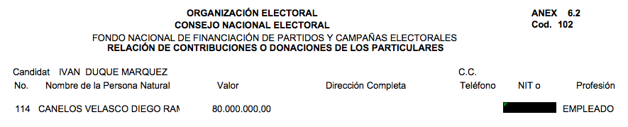 En 2018, Diego Canelos auspició la campaña del hoy presidente Duque, con 80 millones de pesos.