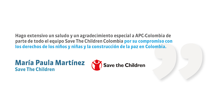 María Paula Martínez es la directora ejecutiva de Save The Children en Colombia, se ha encargado de ejecutar programas de protección de la niñez en toda Colombia, asistiendo a las zonas más alejadas y que no tienen presencia del Estado.