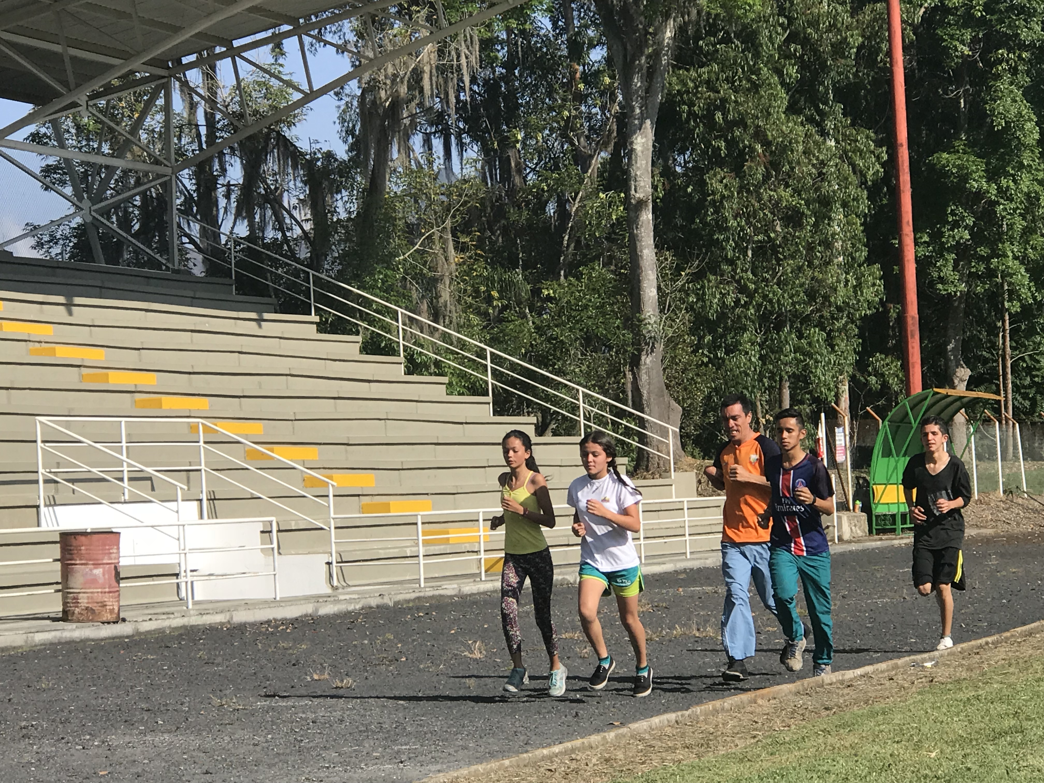 Durante las clases de atletismo realizadas en el Estadio Marco A. Morales en Pacho Cundinamarca, Alexander Sánchez dirige y enseña técnicas deportivas en compañía del profesor Alejandro Ortiz, quien es además su entrenador.