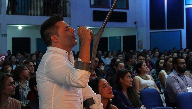 “Los bastones hacen parte de los productos de apoyo o ayudas técnicas que se utilizan en situaciones de enfermedad en las que el paciente necesita una descarga de uno de sus miembros inferiores, una mejor base de sustentación y una movilización más segura”, dice José Gorgues Zamora, de la compañía D´farmacia. Terminando su intervención Álex ora por las casi 200 personas que hay en la iglesia. Aunque hay lágrimas, también queda en el aire esa sensación de alivio, ese nuevo John Álex, ese testimonio poderoso de alguien que sale de la sala caminando por sus propios medios.