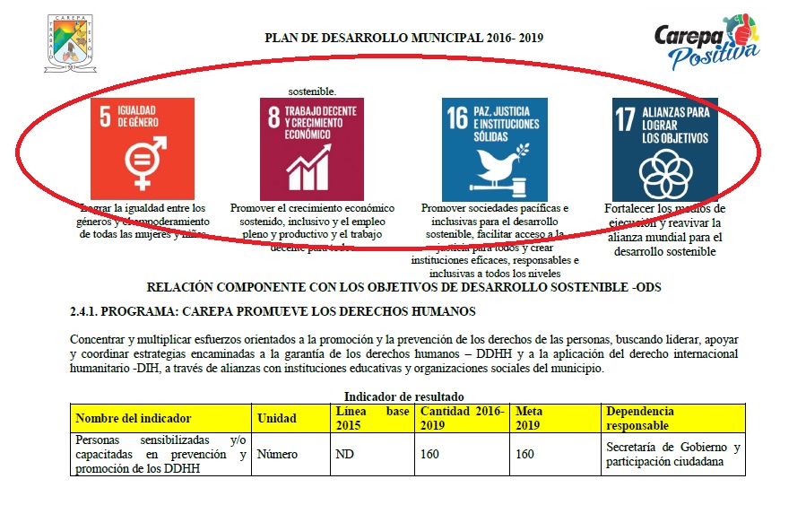 A continuación algunos ejemplos (primero, el programa de gobierno de Cañizalez y segundo, el plan de desarrollo de Carepa):