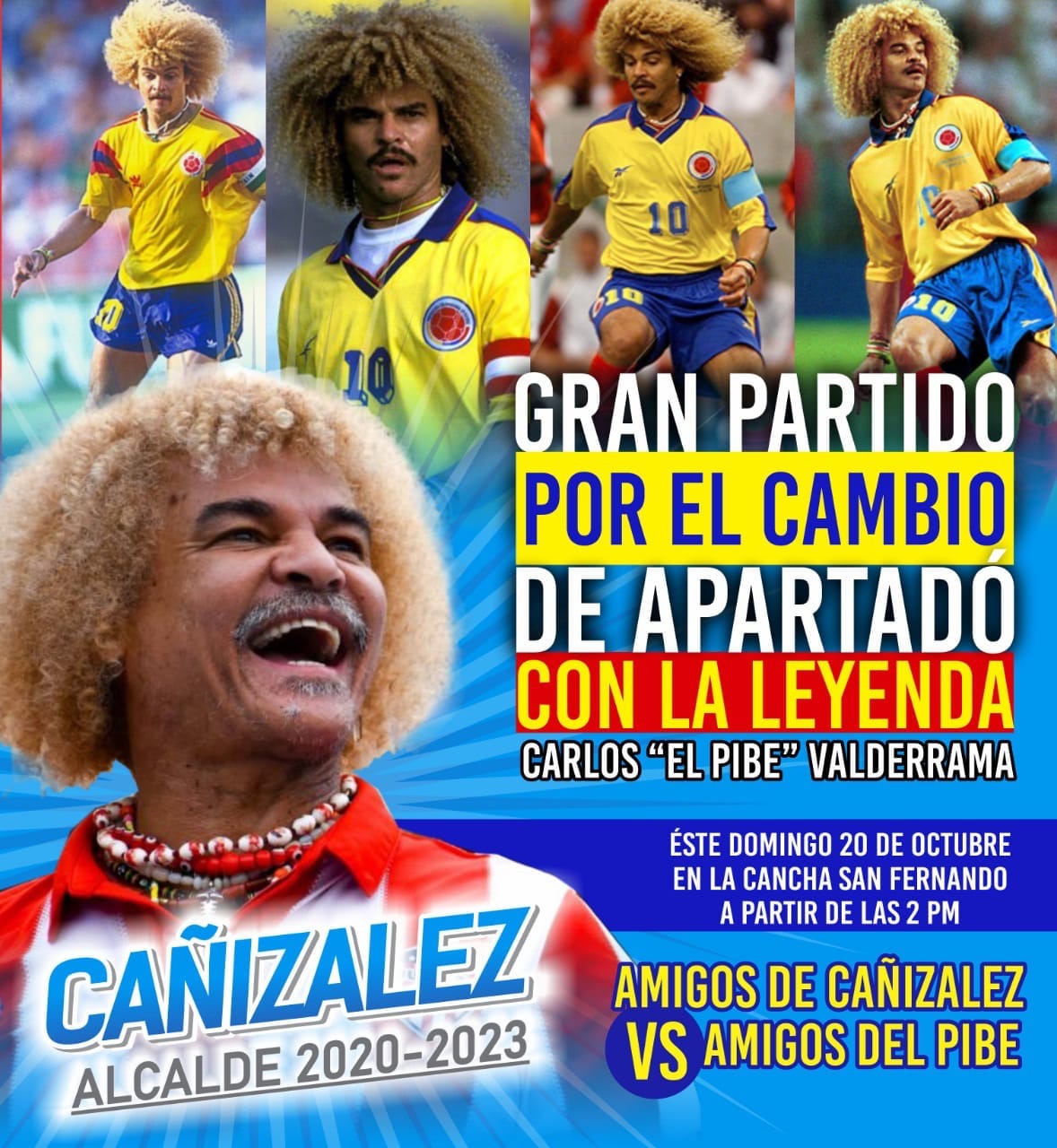 Mientras tanto, en las calles, Cañizalez mantiene una campaña intensa con apoyo de la mayoría de partidos e incluso echando mano de figuras populares. Para su cierre de campaña Cañizalez organizó un partido de fútbol amistoso en Apartadó el pasado domingo 20 de octubre, al que llamó “gran partido por el cambio de Apartadó". Asistieron glorias del fútbol colombiano como Carlos “Pibe” Valderrama y Víctor Danilo Pacheco, dos históricos jugadores del barranquillero Junior Fútbol Club, propiedad de la familia Char.