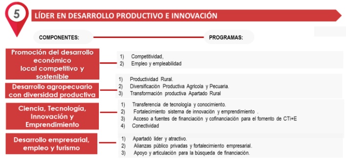 Aquí, las coincidencias evidentes se ven en los dos últimos renglones en las columnas de “componentes” y “programas” que aparecen como calcados: “Ciencia, Tecnología, Innovación y Emprendimiento” y “Desarrollo empresarial, empleo y turismo”, en el caso de los componentes; y, en el caso de los programas, continúa el uso de las mismas palabras.