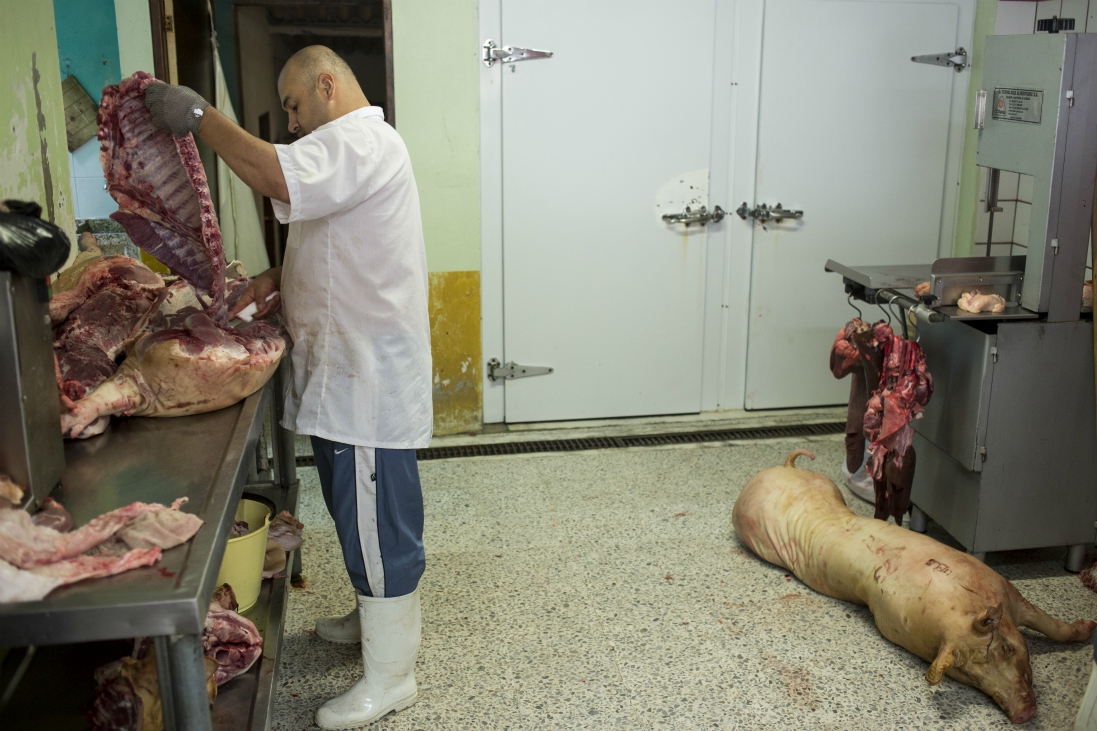 Despiece de animales en una carnicería de El Retiro, Antioquia. (Foto: Daniel Estrada)