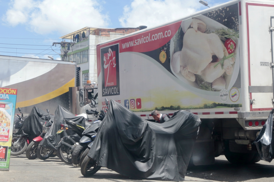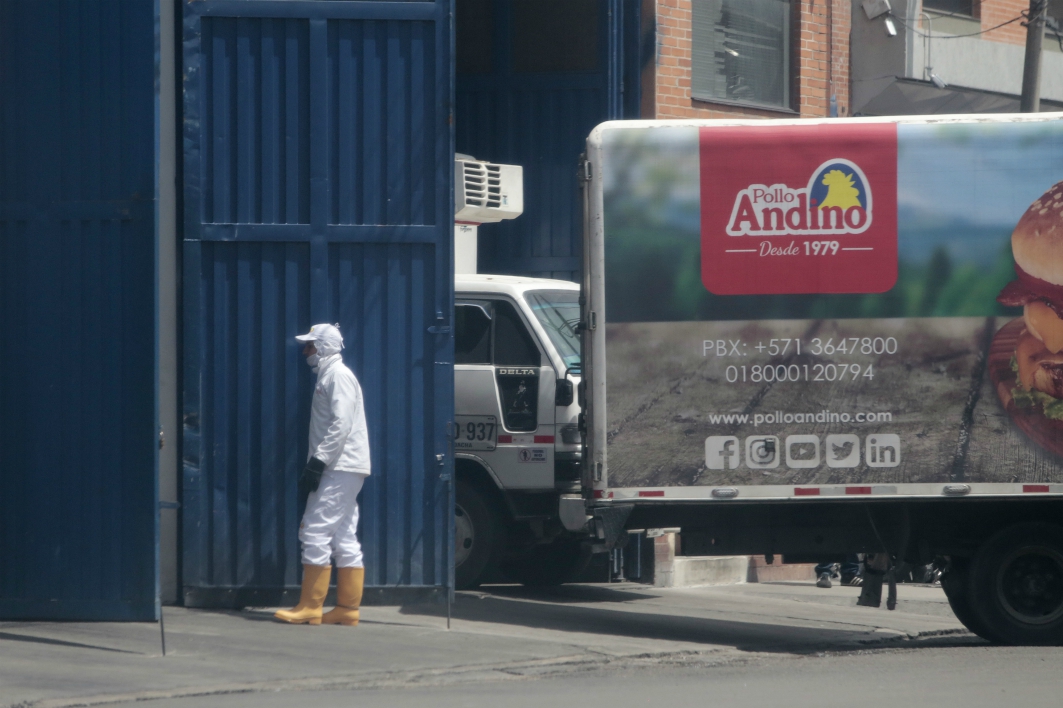 La trompa de los camiones blancos de la empresa procesadora Pollo Andino, una de las más reconocidas del país, se asoma nada más llegar a la esquina de la carrera 37, muy cerca de San Andresito en Bogotá. Más adelante se ven, al fondo, las torres de canastillas donde se transportan los trozos de pollo y unos pocos operarios vestidos con gorros y tapabocas que se mueven entre la calle y las instalaciones. Parece una escena corriente, de un día cualquiera. Para el veterinario epidemiólogo que acompañó a La Liga Contra el Silencio esa mañana de agosto, sin embargo, se trata de un compendio detallado de infracciones que reflejan el descontrol sanitario que campea en el sector cárnico colombiano.