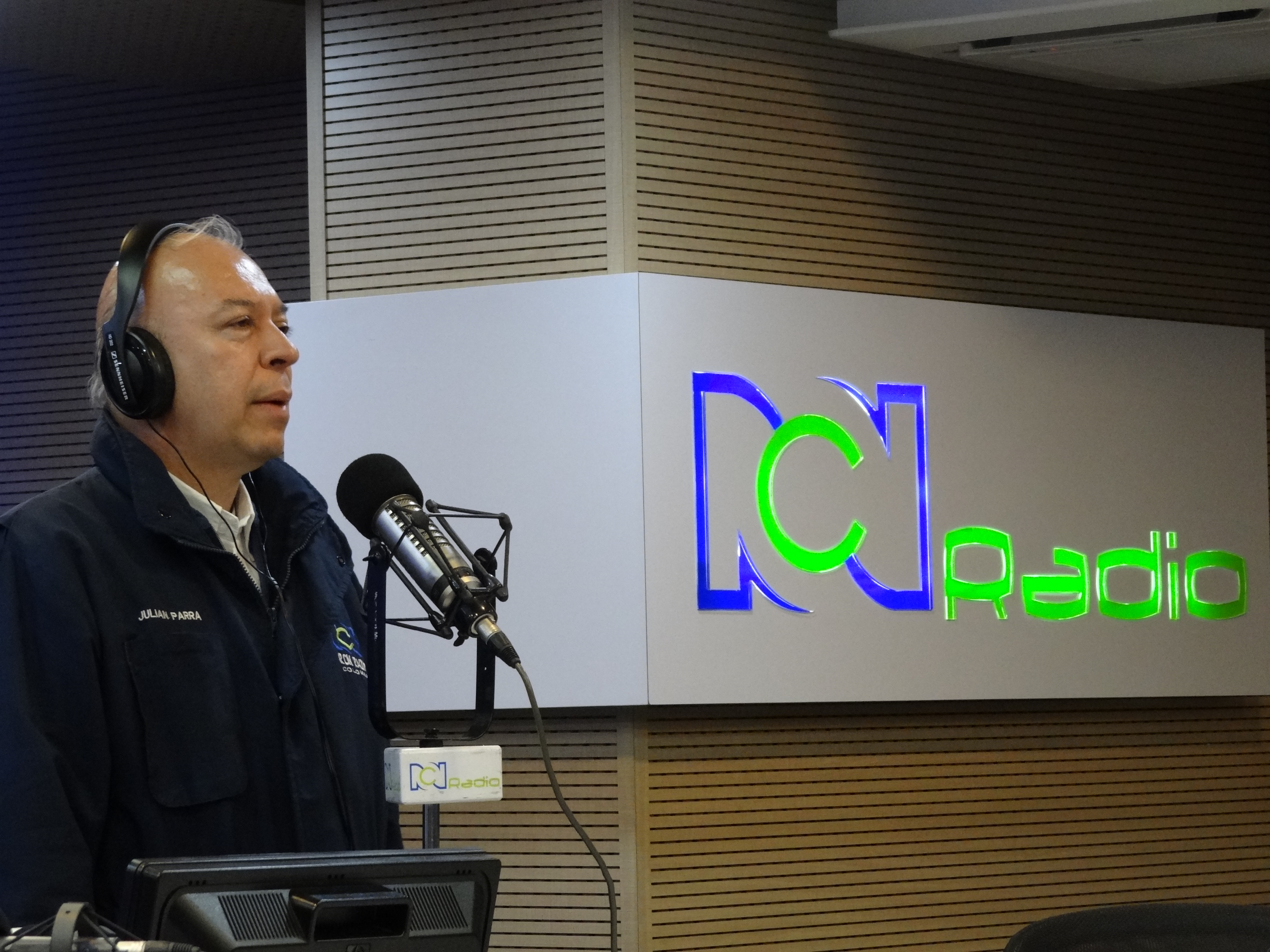 A un poco más de cuatro kilómetros de RTVC, Julián Parra llega sobre las ocho de la noche en pijama a RCN, saluda a los periodistas de la redacción y a su productor, Diego Reyes, quien está preparando los temas. Lleva una maleta y una bolsa roja donde guarda su comida. Sale al aire a las diez de la noche a hacer “la radio en pijama”.
