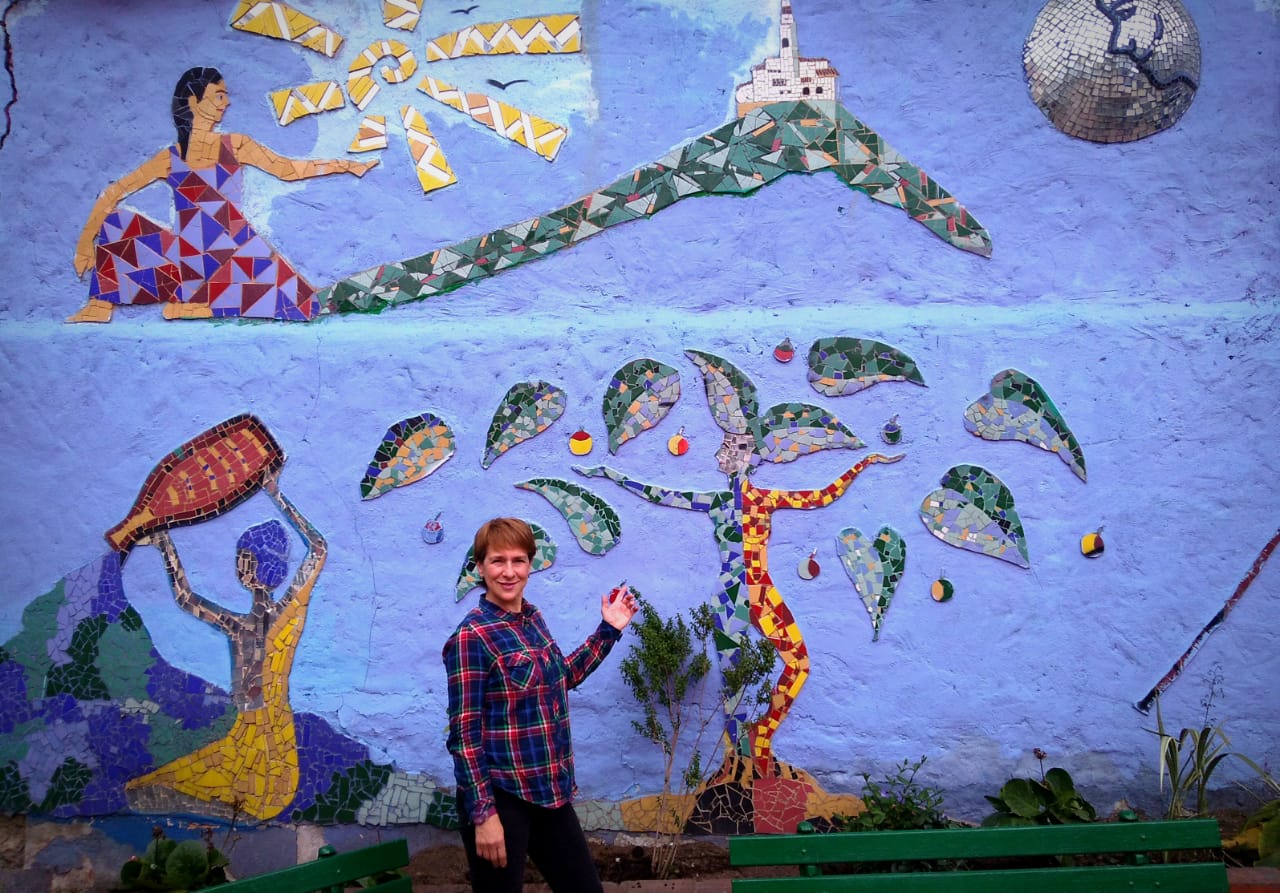 Sandra Rivera junto al mural de la mujer en la alcaldía de La Candelaria.