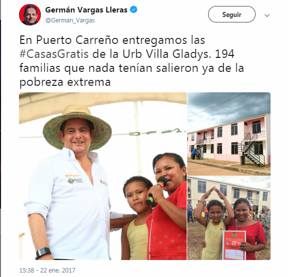 Ante cientos de familias expectantes, el día de la entrega, Vargas Lleras celebró junto al entonces alcalde Marcos Pérez y al gobernador Luis Carlos Álvarez. Los habitantes dicen que repartió abrazos, pero les extrañó que no entrara a conocer las casas.