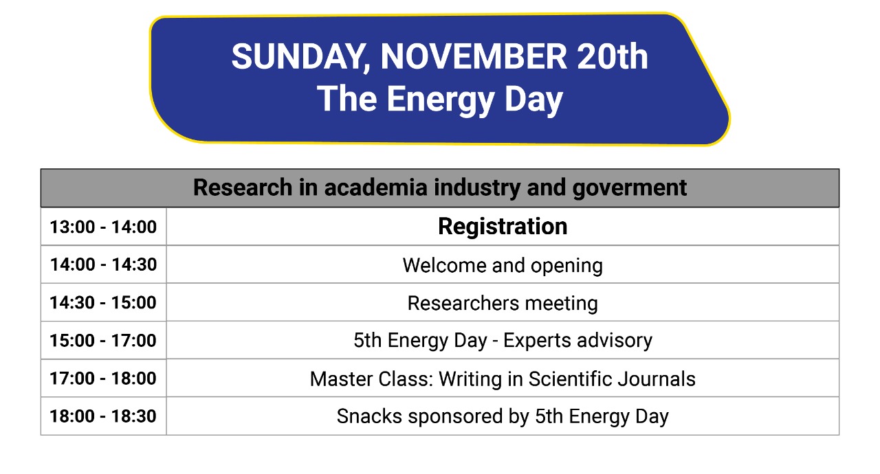 Los trabajos en etapas iniciales o que puedan beneficiarse de discusiones con expertos, pueden postularse al 5° Día de la Energía - 8° ELAEE y tendrán la oportunidad de presentar y discutir los trabajos con algunos miembros del comité académico del ELAEE y otros expertos en energía en un espacio más abierto y con tiempos menos restringidos.