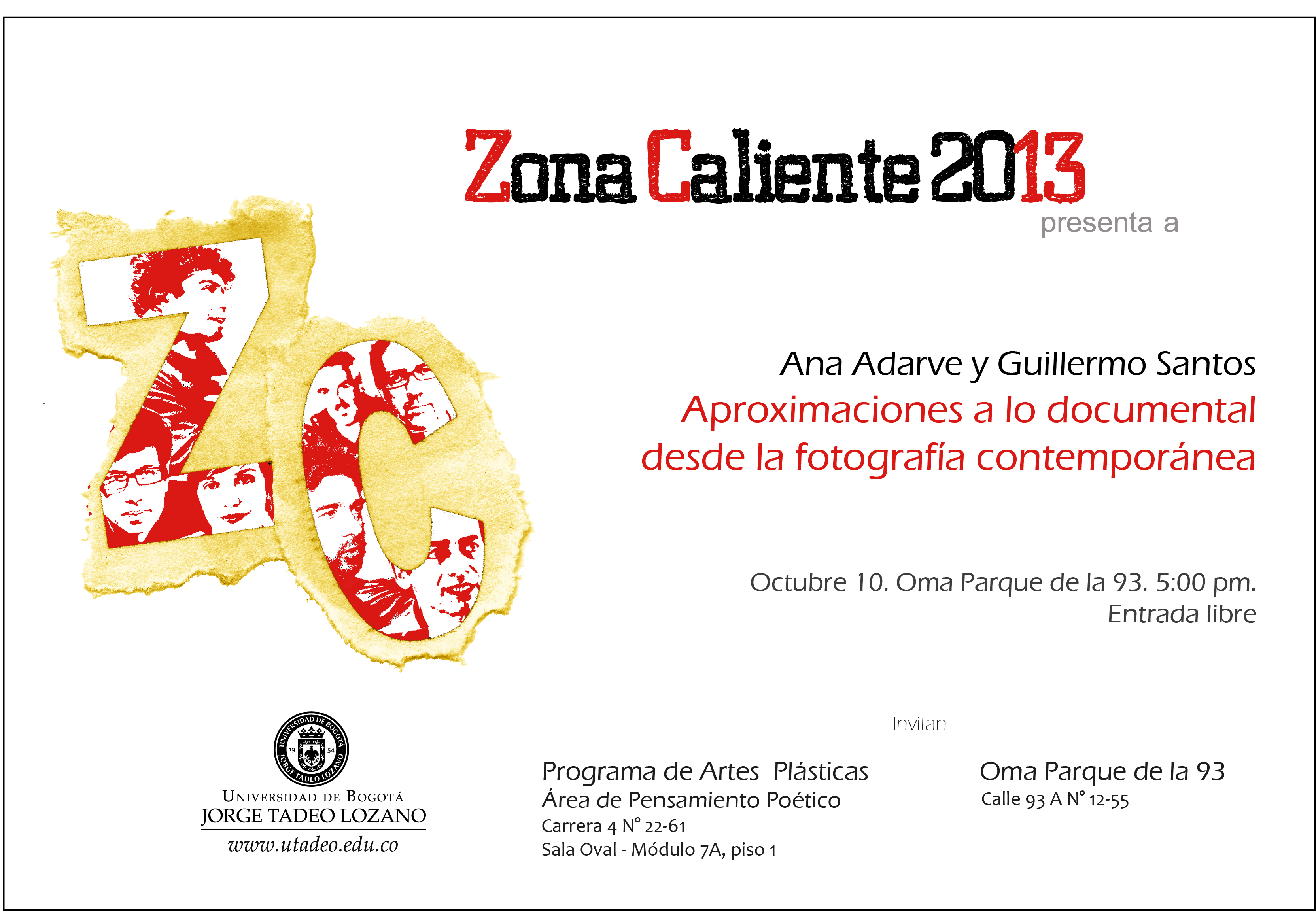La Zona Caliente presenta a Ana Adarve y Guillermo Santos el jueves 10 de octubre, a las 5 p.m. en Oma del Parque de la 93