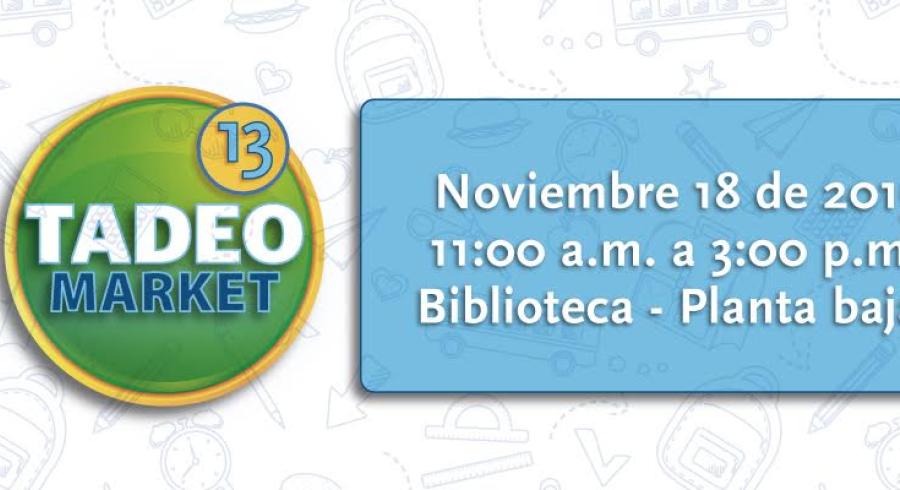 La decimotercera versión de Tadeo Market, organizada desde la asignatura Merchandising y Promoción de Ventas, se realizará el miércoles 18 de noviembre en la Planta Baja de la Biblioteca (Módulo 21), a partir de las 11:00 a.m. hasta las 3:00 p.m.