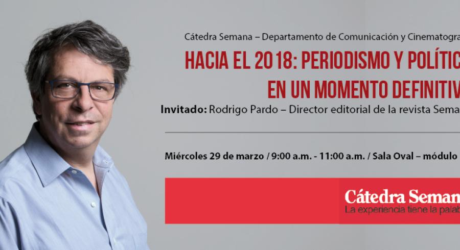 El próximo miércoles 29 de marzo la Facultad de Ciencias Sociales, el Departamento de Comunicación y Cinematografía, y el Programa de Comunicación Social y Periodismo, llevarán a cabo la segunda Cátedra Semana de este semestre. El invitado es el periodista Rodrigo Pardo, director editorial de la revista SEMANA.