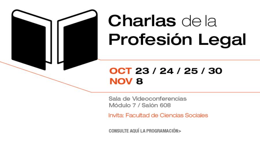 La Facultad de Ciencias Sociales y el Departamento de Ciencias Jurídicas invita a las charlas de la Profesión Legal que se llevarán a cabo en las siguientes fechas: