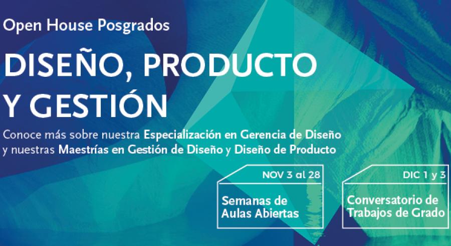 Hasta el 28 de noviembre, asiste a las semanas de Aulas Abiertas, en las que podrás ver las clases más representativas de nuestros posgrados. El 1º y 2 de diciembre, podrás conocer los resultados de los trabajos de grado de nuestros estudiantes de las Maestrías en Gestión de Diseño y de Diseño de Producto.
