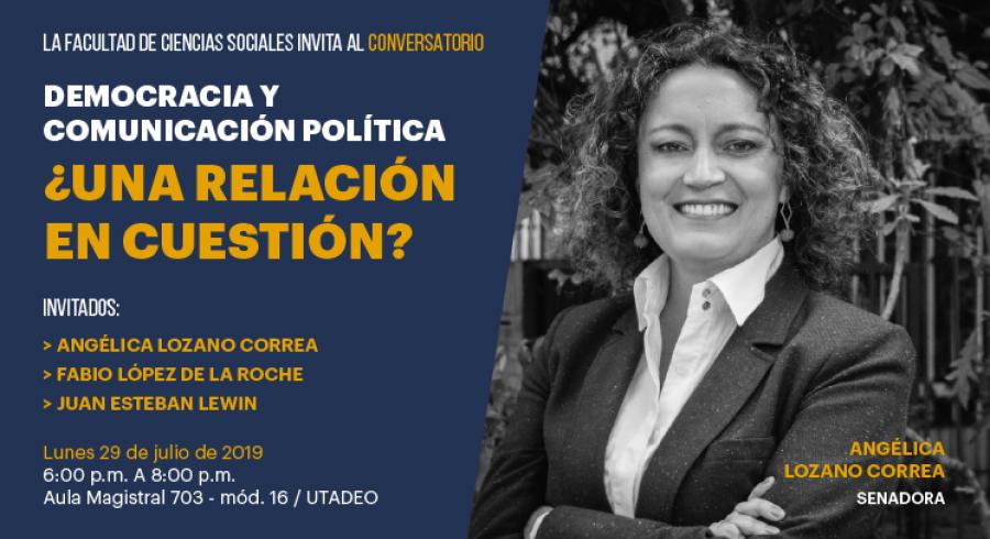 La nueva Maestría en Comunicación Política de Utadeo invita al Conversatorio sobre ¨Democracia y Medios de Comunicación¨ con la participación de la senadora Angélica Lozano, el docente investigador de la Universidad Nacional Fabio López de la Roche y el Director de La Silla Vacía, Juan Esteban Lewin.