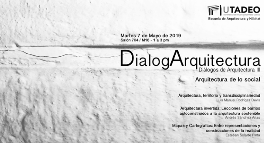 Los Diálogos de Arquitectura son un espacio para la exposición, encuentro y dialogo de diversas posturas relacionadas al oficio de la arquitectura. Es un evento que ocurre tres veces durante el semestre académico en la Universidad Jorge Tadeo Lozano y es organizado y promovido desde la Escuela de Arquitectura.