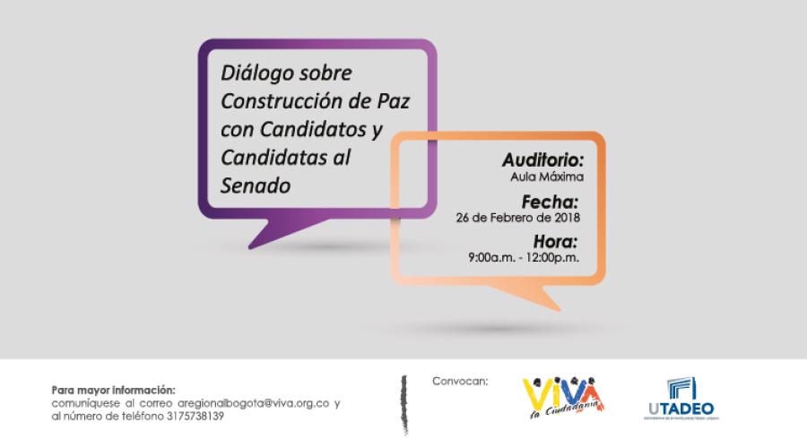 Los acuerdos, procesos y negociaciones de paz son pasos importantes que el país ha dado hacia la superación del conflicto armado interno y la violencia en Colombia y las transformaciones sociales, económicas y políticas que requieren sus territorios para lograr mejores condiciones de vida. En el escenario que plantean las elecciones del 2018, la continuidad de estos procesos es determinante en la definición del futuro del país. Por tanto, en el contexto electoral, es de nuestro interés fortalecer el debate público e informado acerca de la Construcción de la Paz. Con este fin la Facultad de Ciencias Sociales de la Universidad Jorge Tadeo Lozano y la Corporación Viva la Ciudadanía, convocan a un escenario de debate al que han sido invitados a participar candidatos y candidatas al Senado de la República de los partidos: