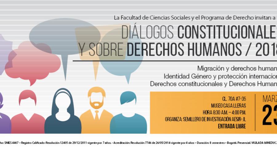 El Programa de Derecho y el Semillero de Investigación AEsir - JL de la Facultad de Ciencias sociales invita al público en general al segundo encuentro del espacio académico: “DIÁLOGOS CONSTITUCIONALES Y SOBRE DERECHOS HUMANOS”. Este Encuentro, iniciado en 2017, se establece como una oportunidad para efectuar conversatorios académicos de carácter periódico, con el fin de tratar temáticas de actualidad e interés relacionadas con el Derecho Público, y en especial el Derecho Constitucional y los Derechos Humanos. Esta actividad es desarrollada por profesores de nuestra universidad e invitados, además de egresados y estudiantes en formación investigativa.