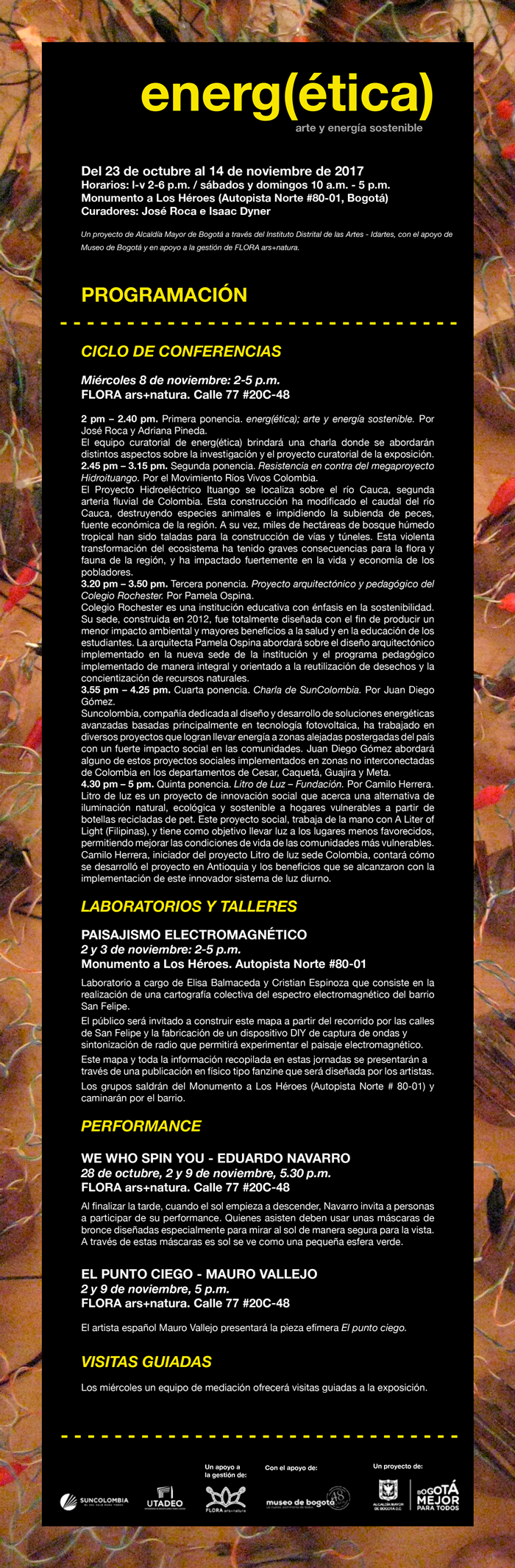 Este proyecto es organizado por la Alcaldía Mayor de Bogotá, a través del Instituto Distrital de las Artes – Idartes-, con el apoyo del Museo de Bogotá, Flora ars-natura y la Universidad Jorge Tadeo Lozano.
