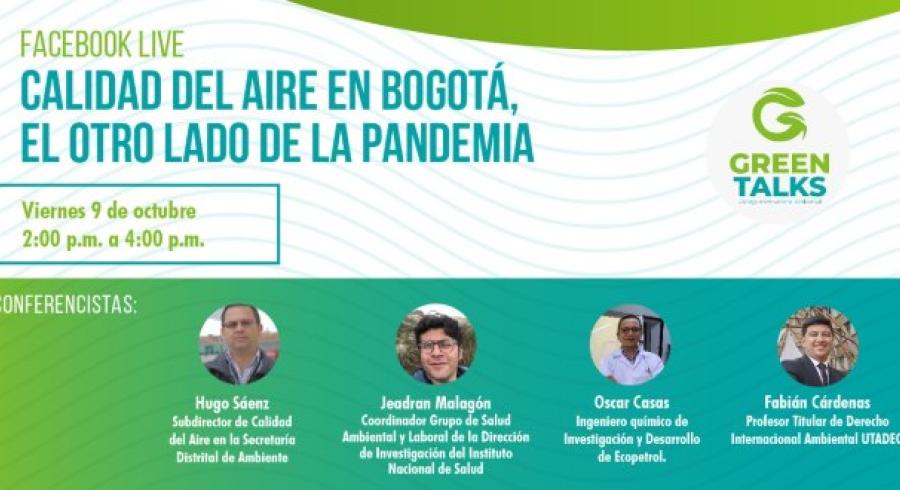 En su decimosegunda entrega, los Green Talks de Asuntos Ambientales Internacionales de Utadeo estarán enfocados en conversar acerca de la calidad del aire en Bogotá en el marco de la pandemia. Los diálogos se harán desde una perspectiva interdisciplinar e intersectorial. Así, tendremos dos ingenieros, un médico y un abogado hablando desde el sector público, la empresa mixta y la academia, en relación con esta preocupación común de la humanidad. La cita es este 9 de octubre, de 2:00 a 4:00 pm., a través de la página oficial de la Universidad en Facebook (@utadeo.edu.co)