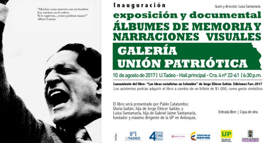 En su cuarta versión, el Festival Internacional de Cine por los Derechos Humanos Bogotá presenta la exposición “Álbumes de Memoria y Narraciones Visuales. Galería Unión Patriótica" de Luisa Santamaría, hija de Gabriel Jaime Santamaría, fundador, presidente de la UP en Antioquia, diputado y vicepresidente de la Asamblea Departamental de Antioquia en 1989. Para lo cual invita al público general, a la inauguración en la Universidad Jorge Tadeo Lozano, hall principal, el día jueves 10 de agosto 2017, a las 6:30 pm.